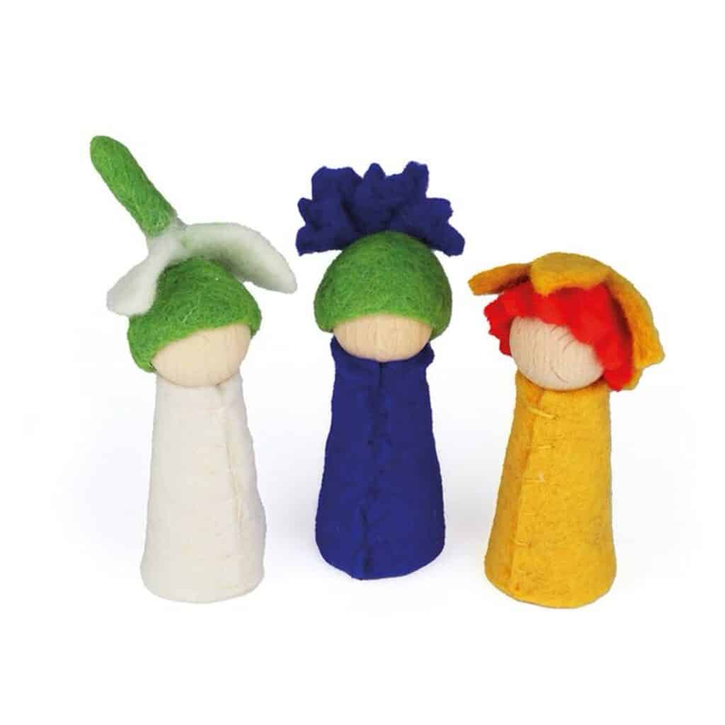 Blumenkinder aus Filz – Frühling, 3-teiliges Set