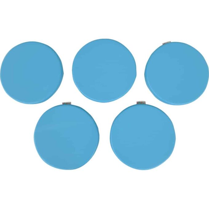 Schaffen Sie mühelos eine flexible, komfortable und einladende Sitzgelegenheit für kleinere Gruppen! Unser 5er-Set runder Bodenkissen ist die ideale Lösung, um schnell und unkompliziert gemütliche Plätze für die Leseecke, kleine Spielrunden oder gezielte Förderaktivitäten zu schaffen. Die Kissen kommen in einer bunten Vielfalt an Farben, die Lebendigkeit in jeden Raum bringen. Gefertigt aus robustem, pflegeleichtem Kunstleder und gefüllt mit formstabilem Schaumstoff, bieten sie eine praktische und langlebige Alternative zu starren Sitzmöbeln. Dank ihrer kompakten Größe und ihres geringen Gewichts sind sie die perfekte Ergänzung für dynamische Umgebungen wie Kitas, Grundschulen und Therapieräume.