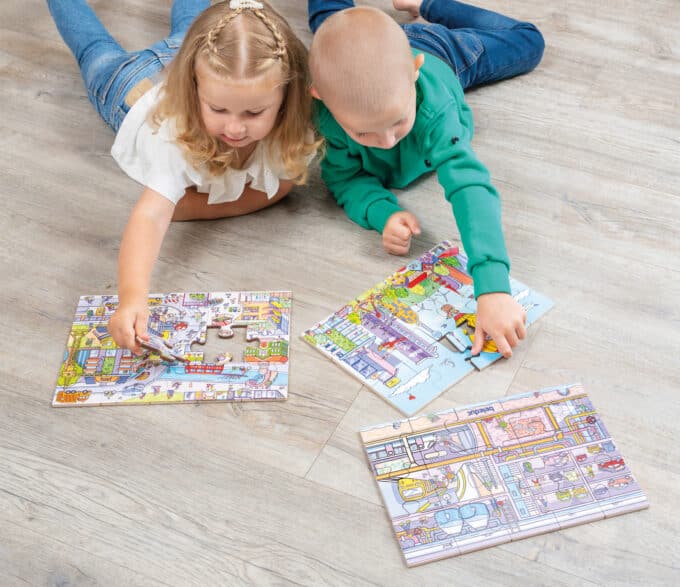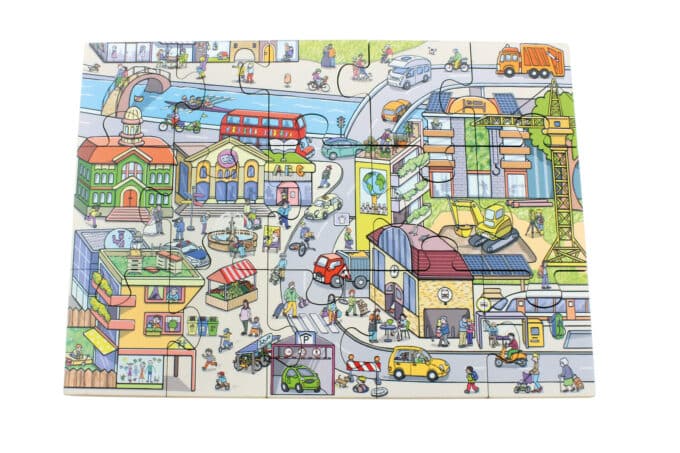 Das Bodenpuzzle „Stadtleben“ verbindet Spielspaß mit pädagogischem Mehrwert. Es fördert nicht nur motorische Fähigkeiten, sondern regt auch die Fantasie und Kommunikation an.