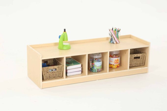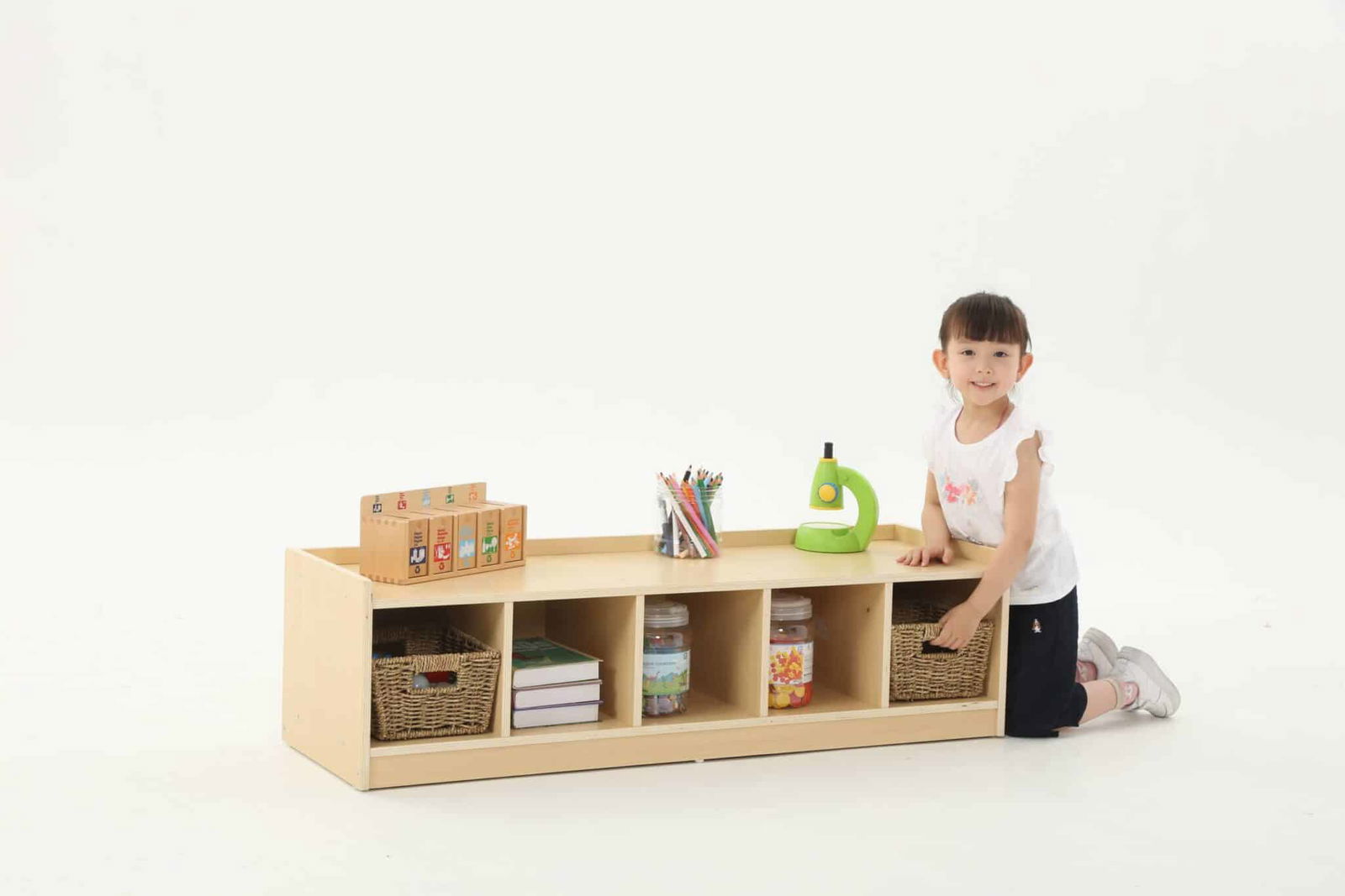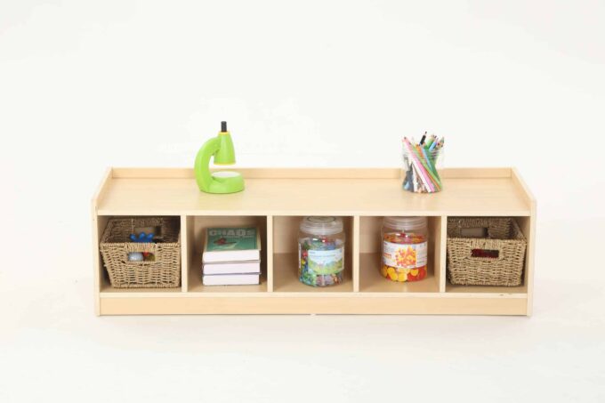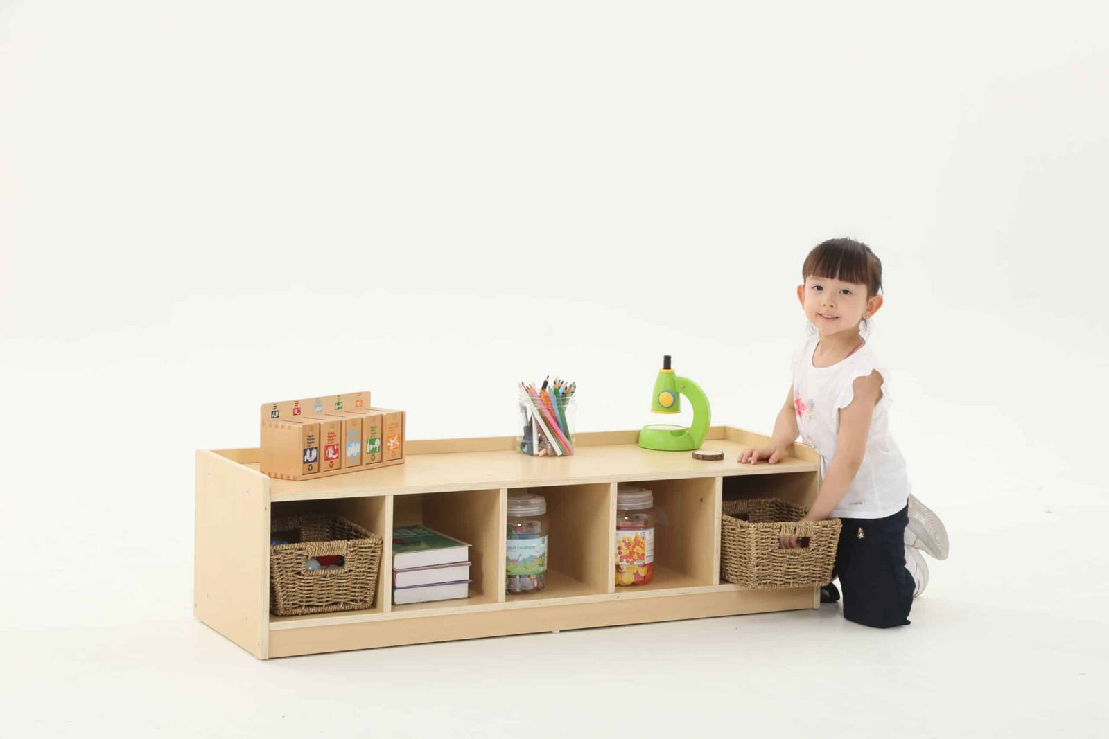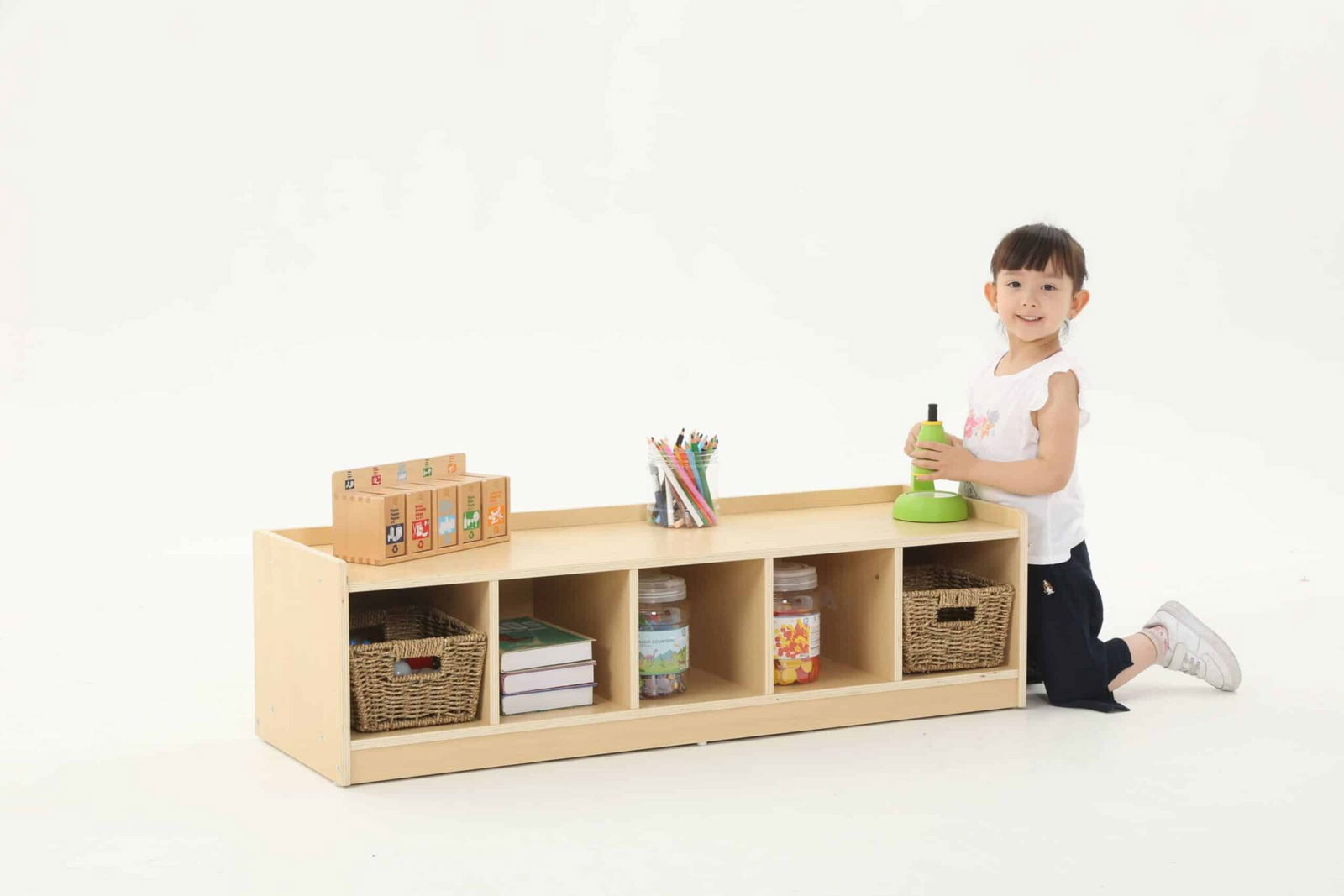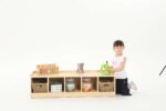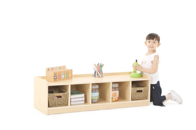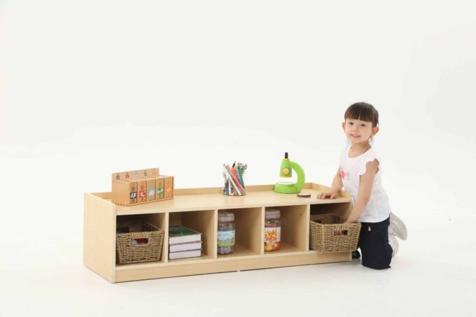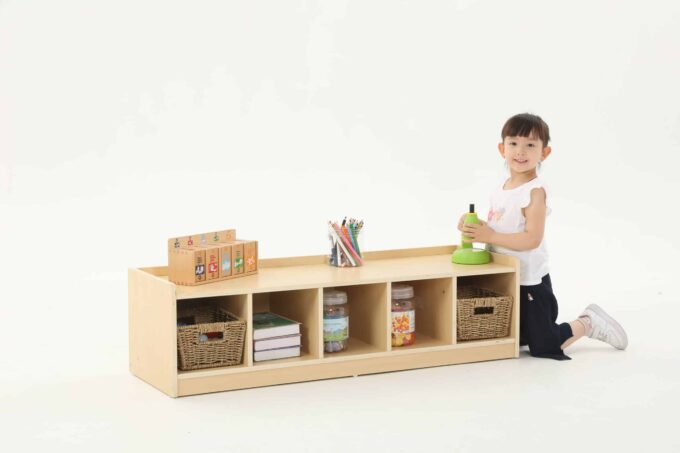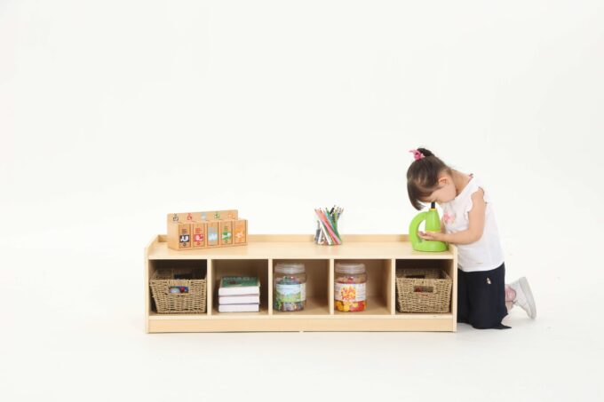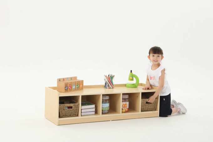 - Kindgerechte Höhe: Das niedrige Design ermöglicht es auch jüngeren Kindern, Materialien selbstständig zu entnehmen oder wegzuräumen – ideal für Krippen und Kindergärten.