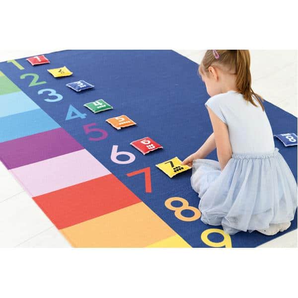Spielmatte für den Boden – Lernspaß mit Farben und Zahlen. Diese weitläufigen Spielteppiche sind ideal für Spiele in der Gruppe geeignet und bieten Kindern viel Raum zur körperlichen Aktivität. Auf unterhaltsame Weise werden so Farben und Zahlen gelernt und gleichzeitig motorische Skills gefördert. Die Matte besteht aus Polyamid und besitzt eine rutschhemmende Rückseite.