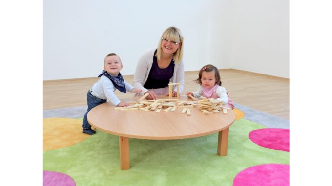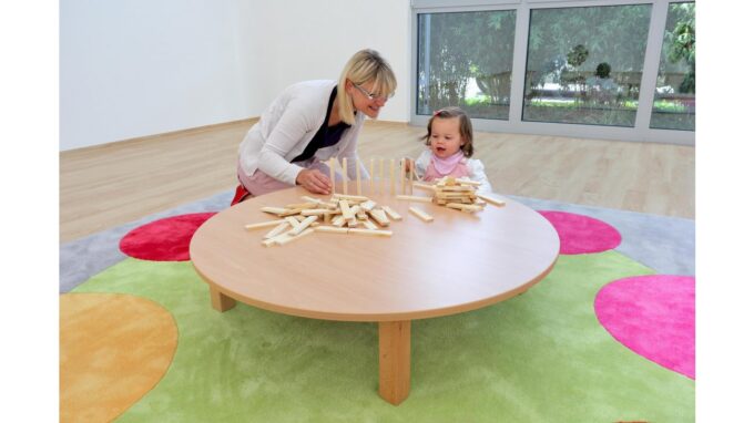 Willkommen beim Betzold Bodenspieltisch! Dieser runde Kindertisch ist die ideale Lösung für öffentliche Einrichtungen und bietet den Kleinen einen sicheren und stabilen Platz zum Spielen, Malen und Basteln. Mit einer praktischen Höhe von 25 cm eignet er sich perfekt für Kinder im Alter von 5 Monaten bis 3 Jahren.