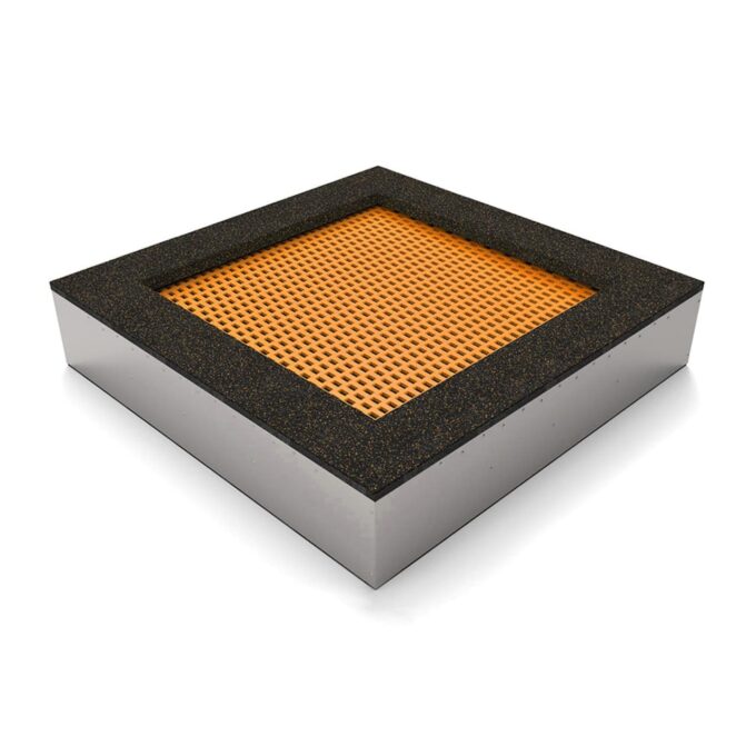 - Der Eingraberahmen wird aus stabilem, feuerverzinkten Stahlblech (1,6 mm stark) mit zusätzlicher Versteifung hergestellt.