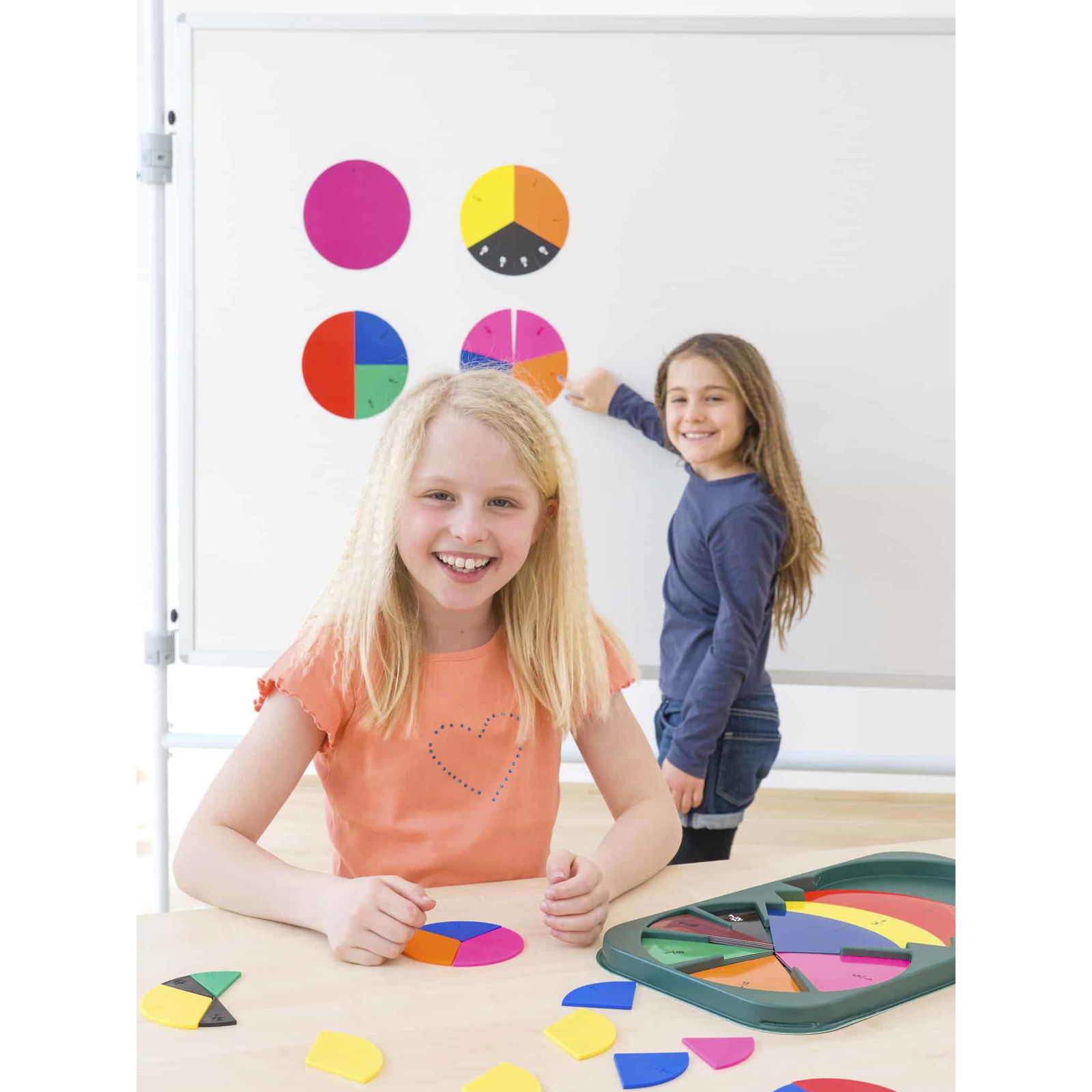 Das Bruchrechen-Set ermöglicht es den Kindern, Aufgaben handelnd und visuell zu lösen. Durch das Auslegen und Übereinanderlegen der farbigen Bruchsegmente können die Schüler die Zusammenhänge und Werte von einzelnen Brüchen ganz intuitiv erfassen. Mit diesem interaktiven Ansatz wird das Verständnis von Brüchen nicht nur vereinfacht, sondern auch nachhaltig gefestigt.