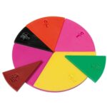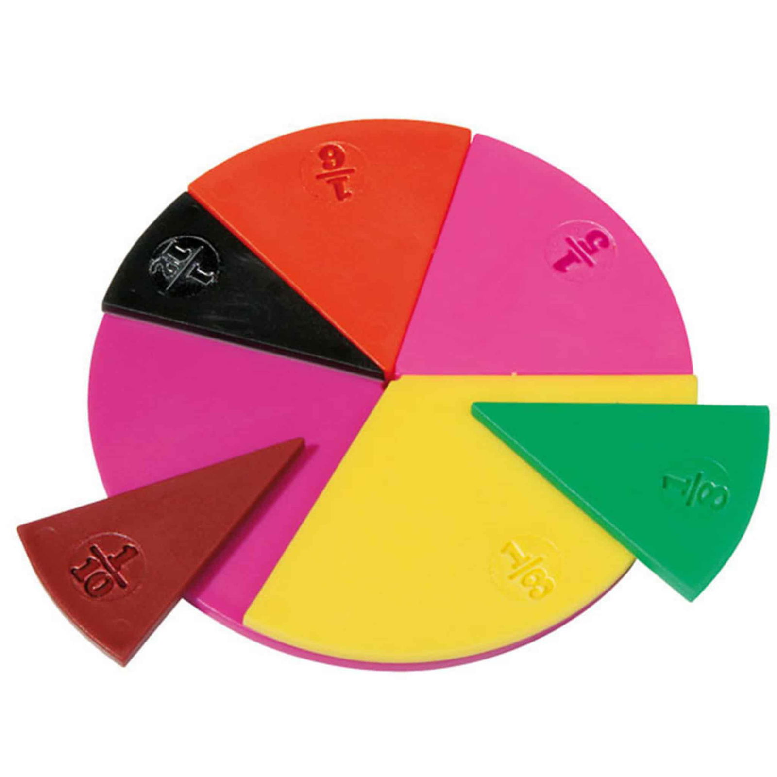 Die Segmente decken die Brüche 1/1 bis 1/12 ab und sind so konzipiert, dass sie einen vollen Kreis mit einem Durchmesser von 10 cm bilden können. Dies bietet eine hervorragende Möglichkeit, visuell zu demonstrieren, wie Brüche sich zu einem Ganzen addieren lassen.