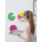 Die Bruchrechenscheiben sind in einheitlichen Farben gestaltet und verfügen über die gleiche Beschriftung in den Schüler-Sets. Diese Konsistenz ermöglicht eine direkte Verbindung zwischen den Materialen und vereinfacht den Unterricht erheblich. Lehrer können den Lernenden schnell und anschaulich demonstrieren, wie man mit Brüchen arbeitet, während die Schülerinnen und Schüler die Konzepte direkt am eigenen Material anwenden und vertiefen können.