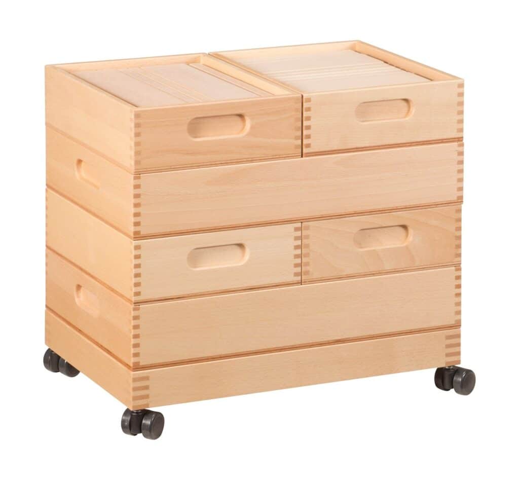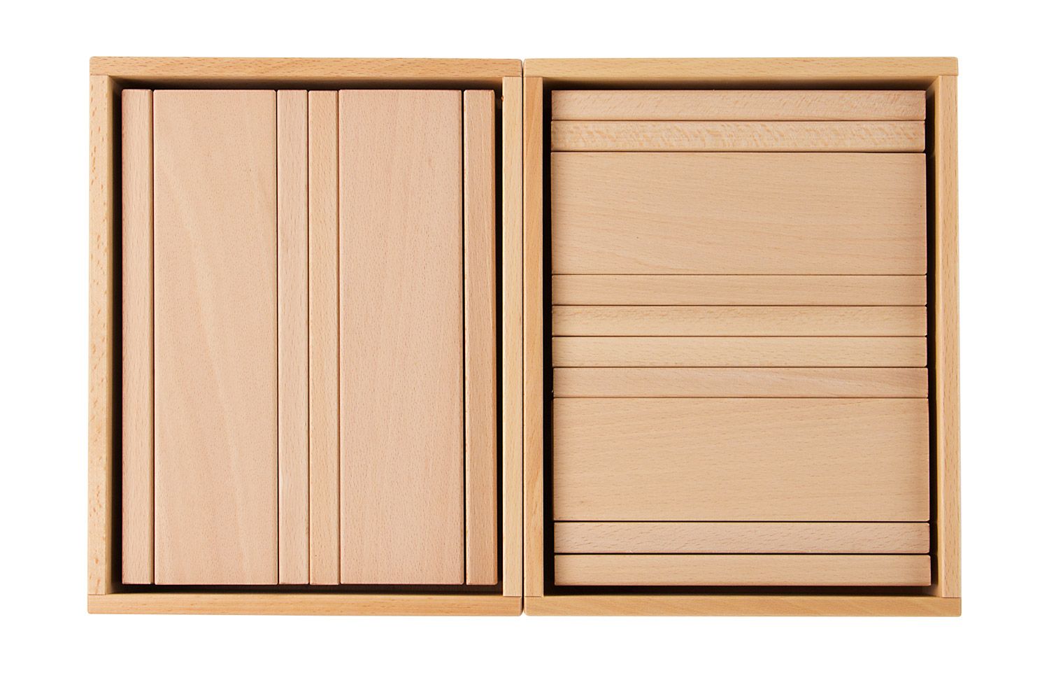 - Sichere und durchdachte Materialien: Alle Kästen sind aus naturbelassenem Buchenholz gefertigt, das langlebig und robust ist. Die Bauklötze sind unlackiert, sauber und exakt gearbeitet. Durch leicht gebrochene Kanten wird die Sicherheit beim Spielen gewährleistet, sodass die kleinen Baumeister unbesorgt ihrer Kreativität freien Lauf lassen können.