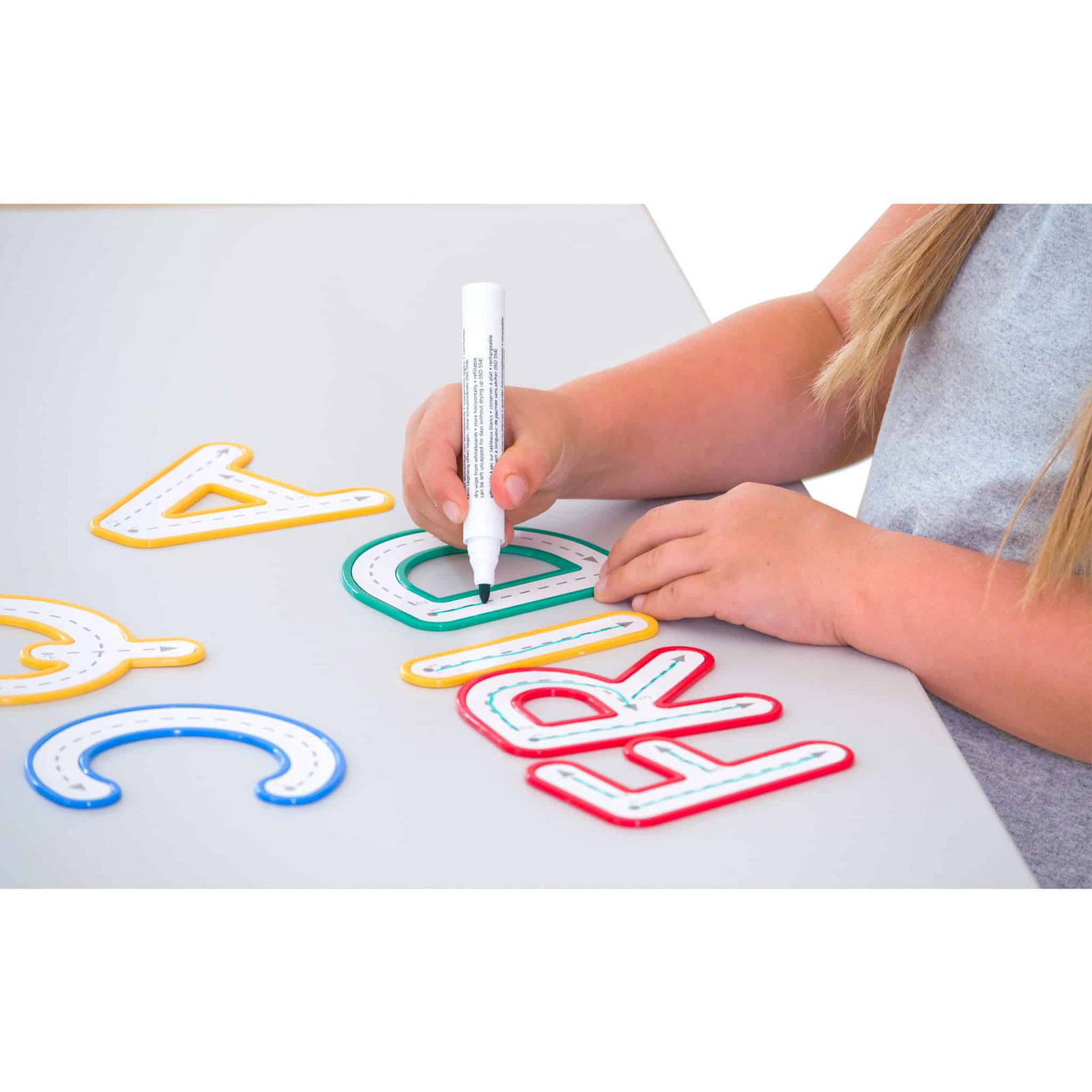 Das Fühlen und Nachspuren der Buchstaben wird auf einzigartige Weise zu einem fesselnden Erlebnis! Jedes Kind kann mit dem Finger die Form der Buchstaben nachspüren und so ein Gefühl für deren Struktur und Schreibrichtung entwickeln. Die beschichtete Oberfläche der Buchstaben ermöglicht es, diese anschließend mit trocken abwischbaren Folienstiften zu beschriften und zu üben. So kann die Schreibübung immer wiederholt werden, bis das Gefühl für das Schreiben und die Buchstaben perfekt ist.