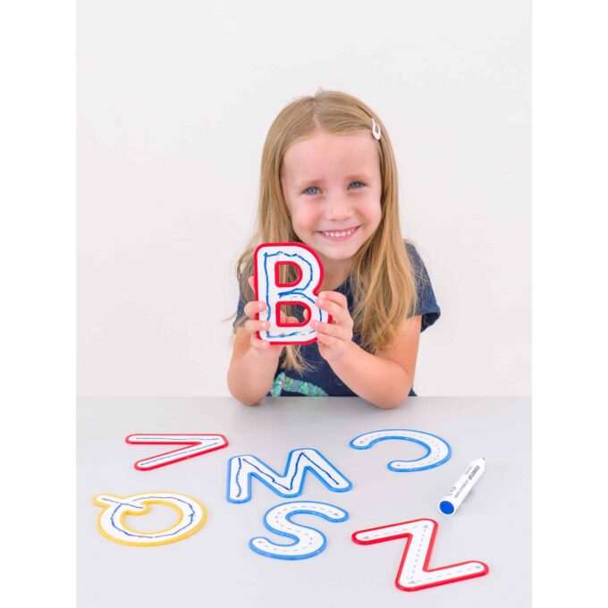 Das Fühlen und Nachspuren der Buchstaben wird auf einzigartige Weise zu einem fesselnden Erlebnis! Jedes Kind kann mit dem Finger die Form der Buchstaben nachspüren und so ein Gefühl für deren Struktur und Schreibrichtung entwickeln. Die beschichtete Oberfläche der Buchstaben ermöglicht es, diese anschließend mit trocken abwischbaren Folienstiften zu beschriften und zu üben. So kann die Schreibübung immer wiederholt werden, bis das Gefühl für das Schreiben und die Buchstaben perfekt ist.