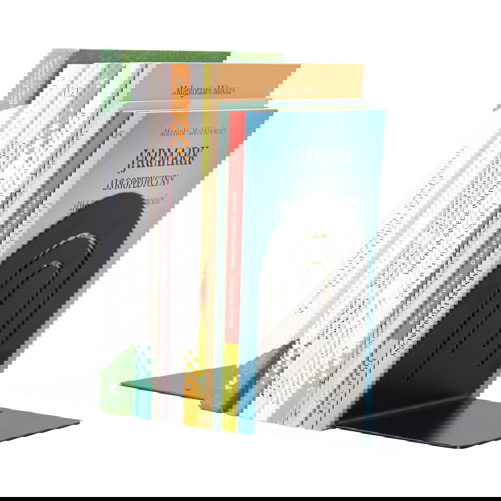 - Lieferumfang: 1 x Set mit 2 Buchstützen aus Metall, schwarz.