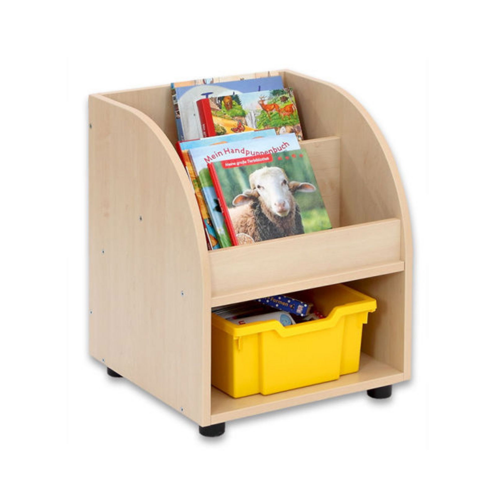 Die Box ist ein echtes Organisationstalent. In den beiden oberen, aufgefächerten Fächern findet eine große Menge an Büchern verschiedener Formate Platz. Das zusätzliche, große Fach im unteren Bereich ist ideal, um eine passende Aufbewahrungsbox für Spielzeug, Bastelmaterial oder weitere Bücher unterzubringen. So bleibt die Leseecke immer ordentlich und aufgeräumt. - Flexibel platzierbar und pflegeleicht