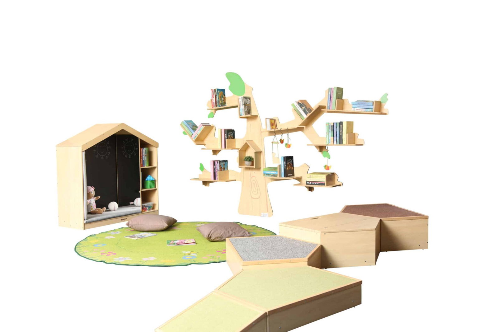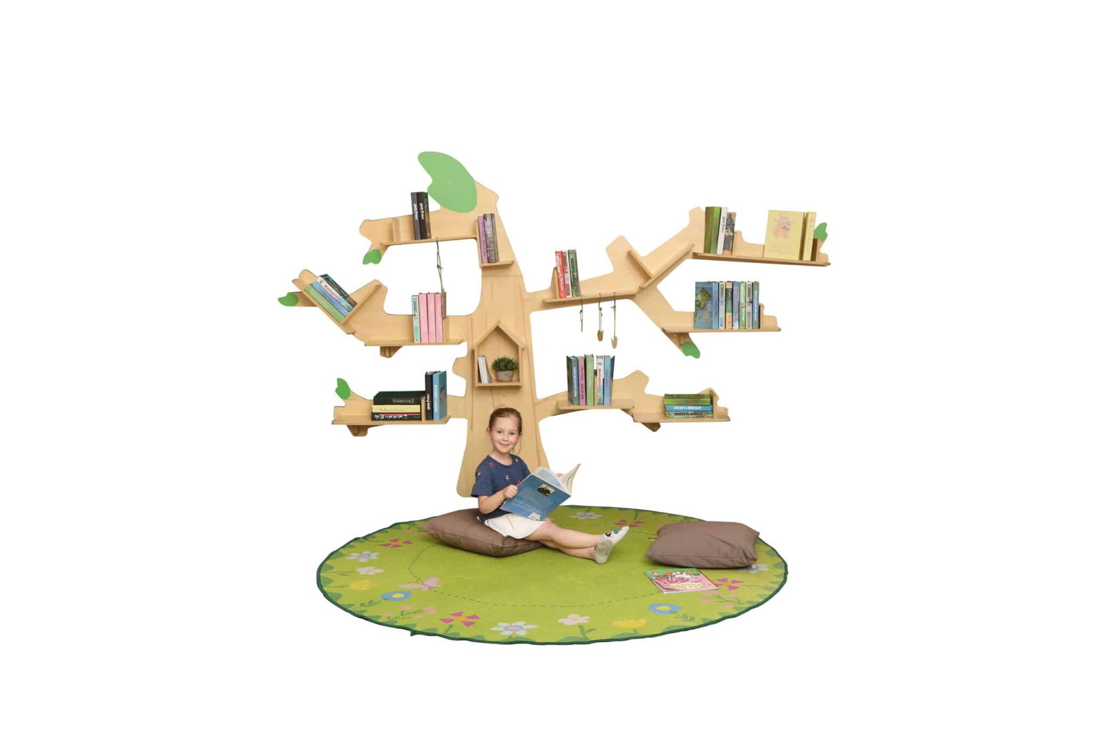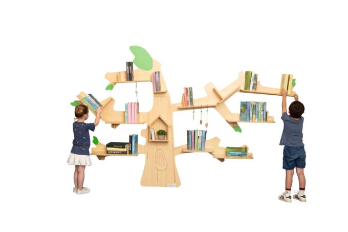 Stellen Sie sich vor, Kinder pflücken sich ihre nächste Geschichte direkt von einem Baum. Dieses einzigartige Design spricht die kindliche Fantasie unmittelbar an und verwandelt die Bücherecke in einen Ort des Abenteuers. Das Regal wird zum visuellen Ankerpunkt, der Neugier weckt und eine positive, emotionale Verbindung zum Lesen aufbaut. Es macht Bücher zugänglicher und attraktiver und kann so die Lesemotivation entscheidend steigern. - Ein beeindruckendes Organisationstalent