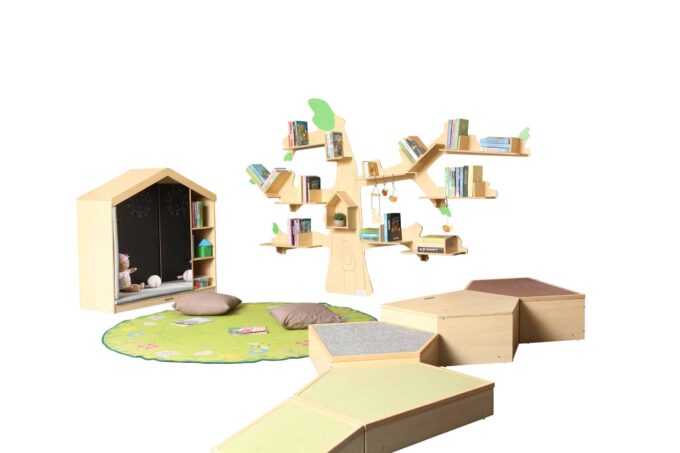 Verwandeln Sie jede Wand in einen magischen Wald des Wissens mit dem Bücherregal „Baum“ von WISDOM. Dieses außergewöhnliche Regal ist weit mehr als nur ein Aufbewahrungsmöbel – es ist ein Statement, ein Kunstwerk und ein pädagogisches Werkzeug in einem. Speziell für die hohen Anforderungen in Kindergärten, Schulen und Bibliotheken entwickelt, kombiniert es ein bezauberndes, von der Natur inspiriertes Design mit beeindruckender Funktionalität und Robustheit. Auf seinen weit ausladenden Ästen bietet es großzügigen Platz für unzählige Bücher und Bildungsmaterialien und schafft eine einladende, inspirierende Atmosphäre, die Kinder dazu motiviert, die wunderbare Welt des Lesens zu entdecken.