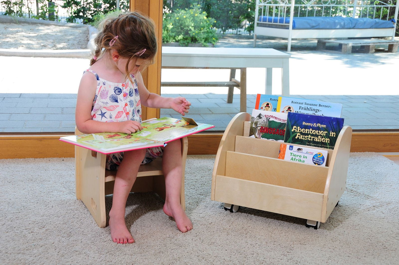 Bringen Sie Ordnung und Flexibilität in Ihre Leseecke mit unserem Bücherwagen! Dieser elegante Bücherwagen bietet mit seinen vier hintereinander angeordneten Fächern ausreichend Platz für Ihre Lieblingsbücher und Spielzeuge. Hergestellt aus hochwertigem Birke Multiplex und matt lackiert, vereint er stilvolles Design mit praktischer Funktionalität.