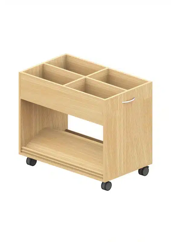 Der Bücherwagen „Willi“ ist ideal für Kindergärten, Schulen und andere pädagogische Einrichtungen. Dieses vielseitige Möbelstück ermöglicht es, Bücher übersichtlich und griffbereit zu präsentieren, während es gleichzeitig leicht zu bewegen und flexibel einsetzbar ist.