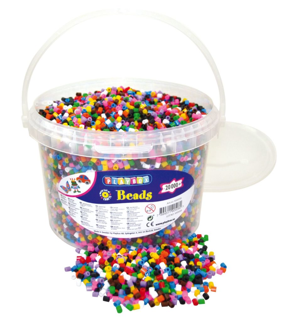 20.000 Bügelperlen samt Eimer: Die Bastelperlen zum Bügeln kommen in einem praktischen Behälter. Nach dem Basteln ist rasch aufgeräumt und der Eimer sicher verschlossen. Durch die große Menge an Perlen und das einfache Verstauen ist das Produkt für Kindergärten und Schulen geeignet. Da die Perlen mit jeweils 5 mm Durchmesser und 5 mm Höhe recht klein sind, sollten Kinder sie nur unter Aufsicht eines Erwachsenen benutzen. Der Hersteller empfiehlt eine Verwendung ab 5 Jahren. Das abschließende Bügeln führt die Aufsichtsperson gemeinsam mit den kleinen Künstlern und Künstlerinnen durch. Die Mithilfe und Aufsicht durch einen Erwachsenen sorgt für Sicherheit. Für Kinder stellen Bügelperlen ein aufregendes Erlebnis dar, bei dem mittels Förderung der Feinmotorik und Kreativität ein einzigartiges Kunst(stoff)werk entsteht.