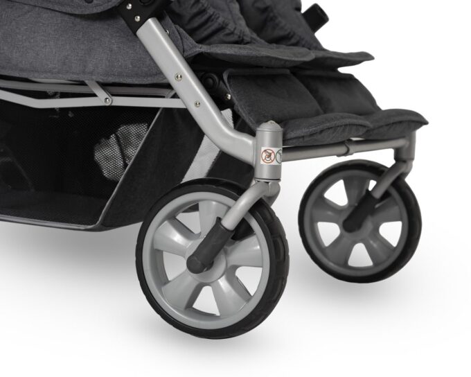 Die weichen Stoffbezüge sind leicht zu reinigen. Rahmen, Räder, Bremsen und Verbindungen sollten regelmäßig überprüft und gereinigt werden. Verwende milde Reiniger, keine aggressiven Chemikalien.