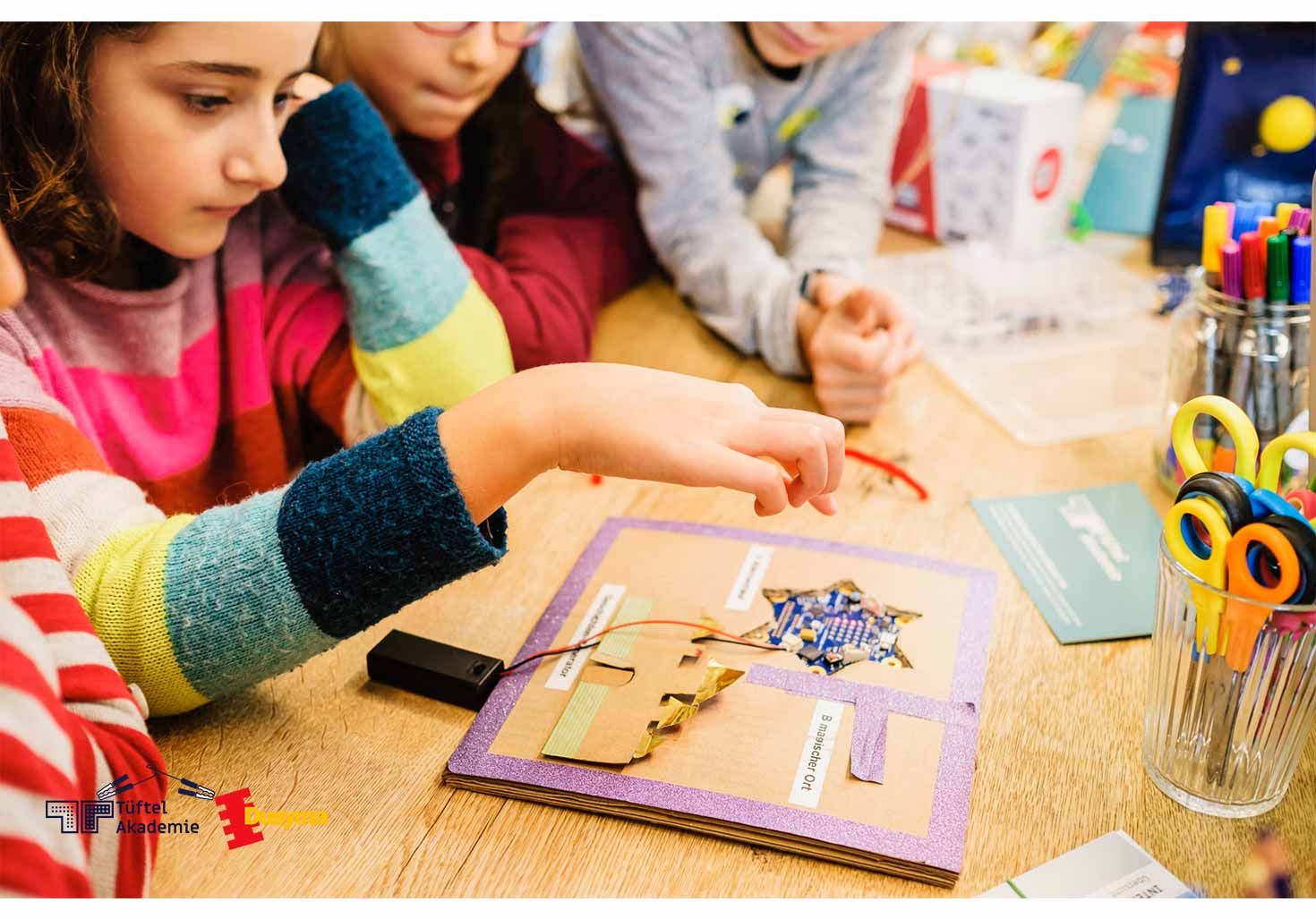 - Kreativität ohne Grenzen: Mit dem Calliope mini und Alltagsmaterialien können Kinder ihre eigenen Projekte designen und verwirklichen.