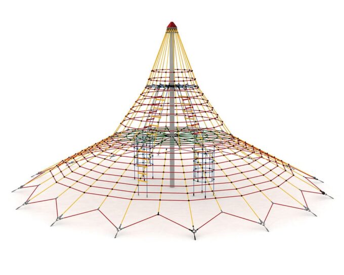 - Ausstattung: Großes Kletternetz in Pyramidenform, zusätzliche Strickleitern