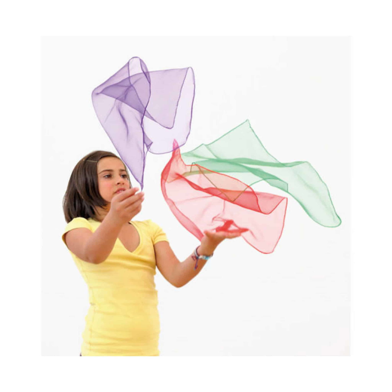 Die Chiffon-Tücher sind die perfekte Ergänzung für jedes Spielzimmer oder die Turnhalle. Ob beim Jonglieren, kreativen Tanzeinlagen oder beim Spielen – die Einsatzmöglichkeiten sind schier endlos. Sie helfen dabei, grundlegende feinmotorische Fähigkeiten wie Werfen, Fangen und Jonglieren zu entwickeln. Dank des super leichten Materials fliegen die Tücher langsam durch die Luft, was es den Kindern ermöglicht, sich auf das Erlernen der richtigen Jonglier-Technik zu konzentrieren.