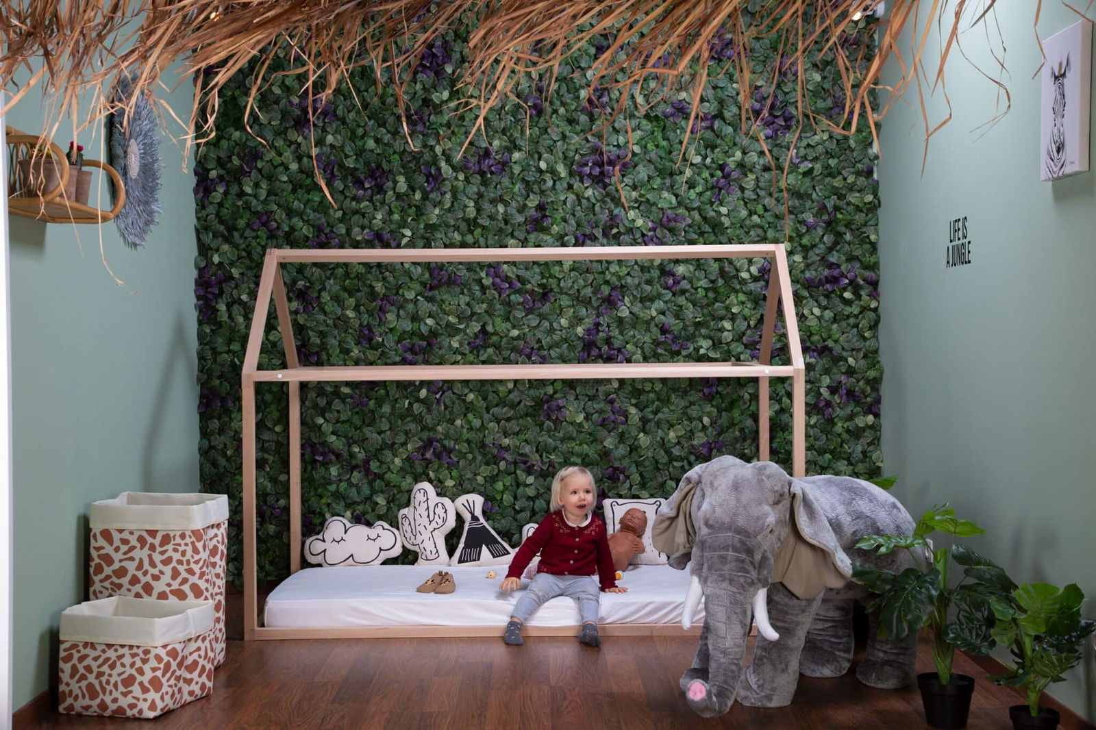 Schlafen Sie in Ihrem eigenen gemütlichen Haus, wie schön ist das? Der Bettrahmen aus Holz in Form eines Hauses ist der perfekte Blickfang für ein cooles Kinderzimmer. Personalisieren Sie das Haus mit Girlanden oder machen Sie es mit unserer optional erhältlichen Decke gemütlich.