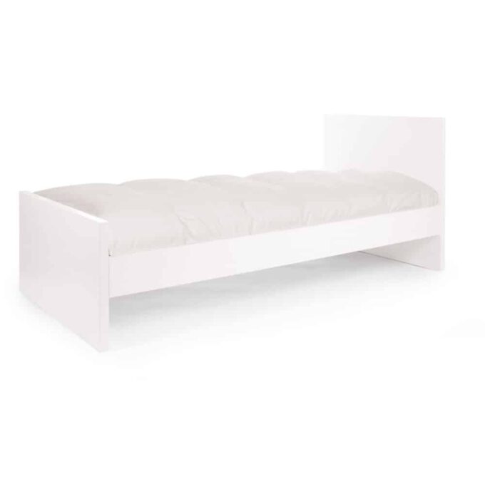 Das Quadro weiß Kinderbett (90x200cm) ist ein modernes und zeitloses Bett, das in jedes Kinderzimmer passt. Das Bett hat einen hohen Kopf und ein kürzeres Fußbrett. Höhe Kopfteil: 85cm – Höhe Fußbrett: 50cm. Beinhaltet einen Lattenrost. Anzahl der Lamellen des Lattenrostes: 14. Höchstgewicht: 85kg.