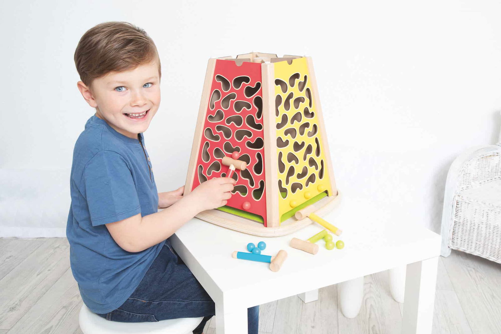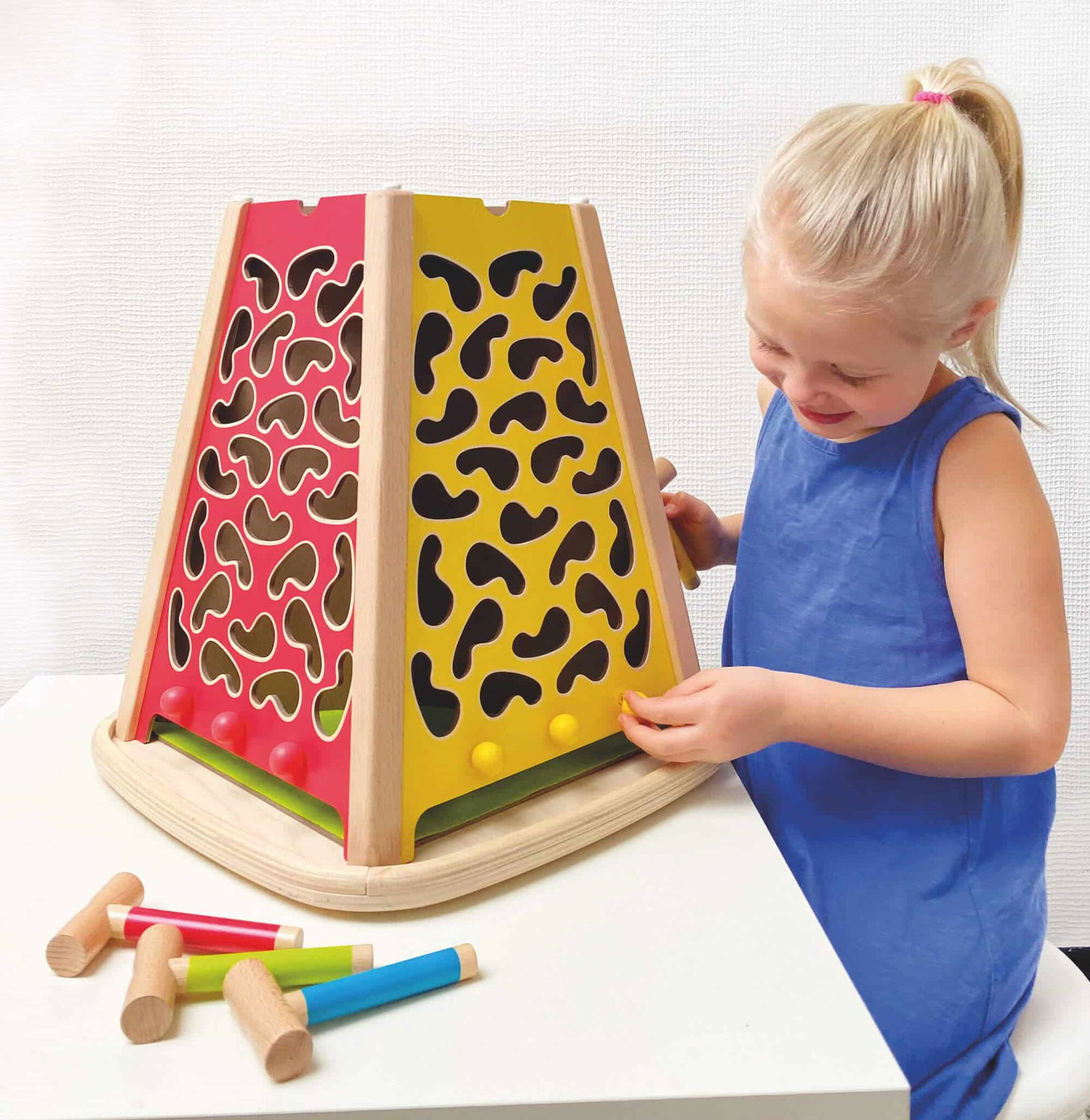 - Mit dem Kugellifter lassen sich die Kugeln sicher durch das Löcher-Labyrinth steuern