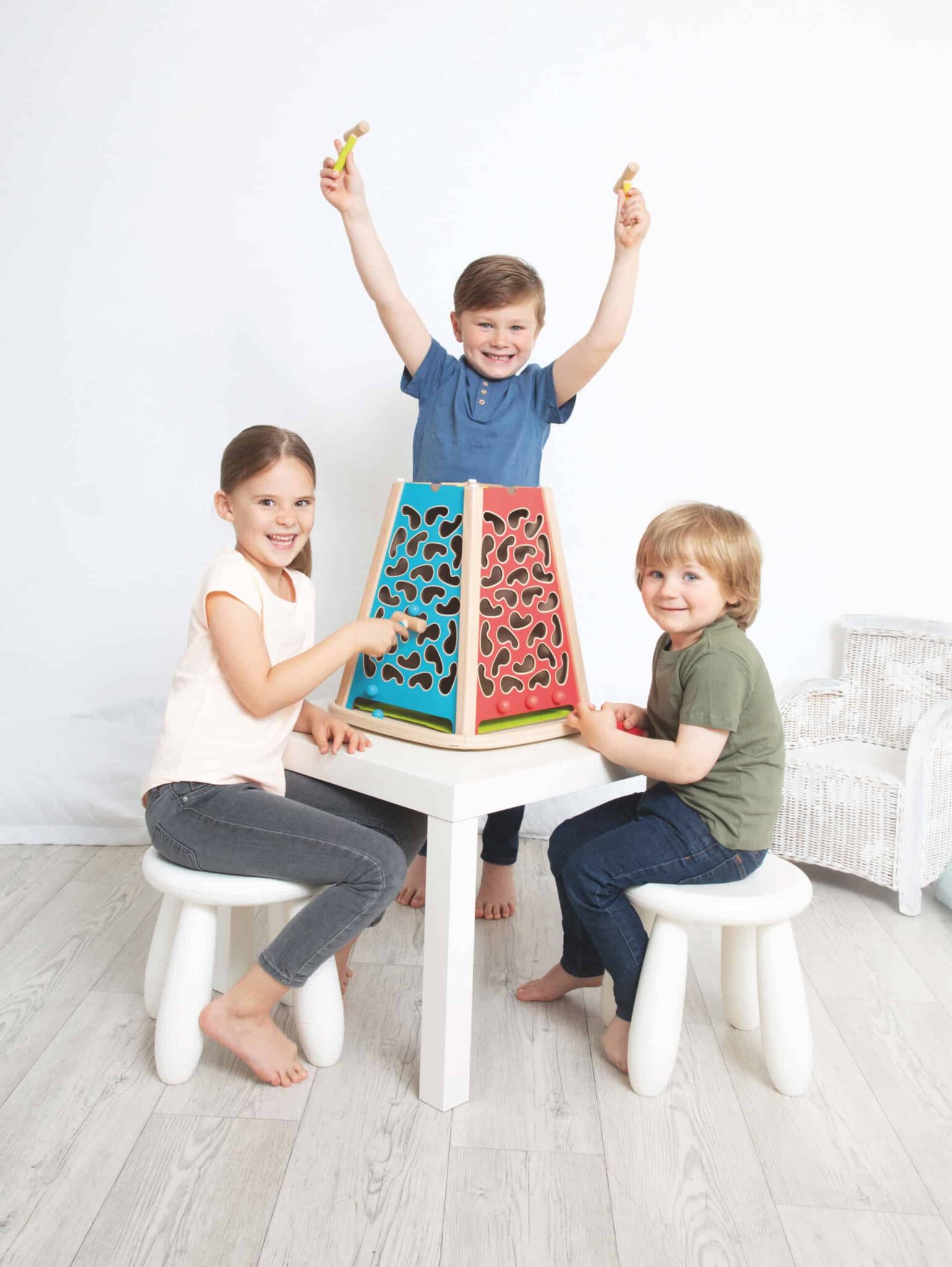 - kooperatives Gruppenspiel mit drei Kindern pro Gruppe