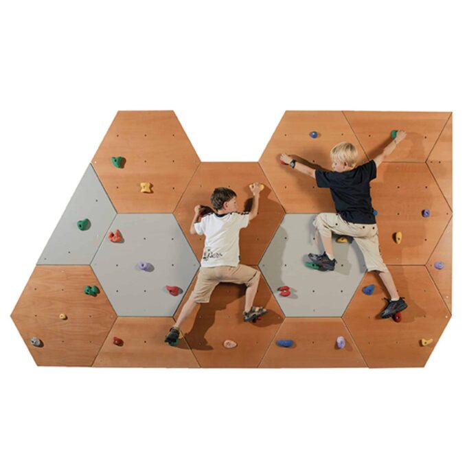 An dieser großzügig bemessenen Kletterwand haben gleich mehrere kleine Kletterer die Möglichkeit, sich so richtig auszutoben. Und der besondere Clou: Durch unser spezielles Wabensystem können Sie diese Wand passgenau in eine Ecke einfügen und durch unsere optional erhältlichen Einzelelemente in alle Richtungen beliebig erweitern. Bitte denken Sie an entsprechende Fallschutzmatten!