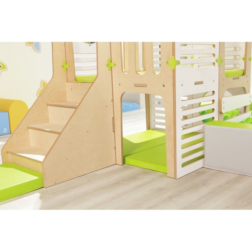 - Ein gesundes Gefühl für Risiken entwickeln: Mit abwechslungsreichen Herausforderungen wie der integrierten Treppe lernen Kinder, ihre Fähigkeiten richtig einzuschätzen und Hindernisse sicher zu meistern.