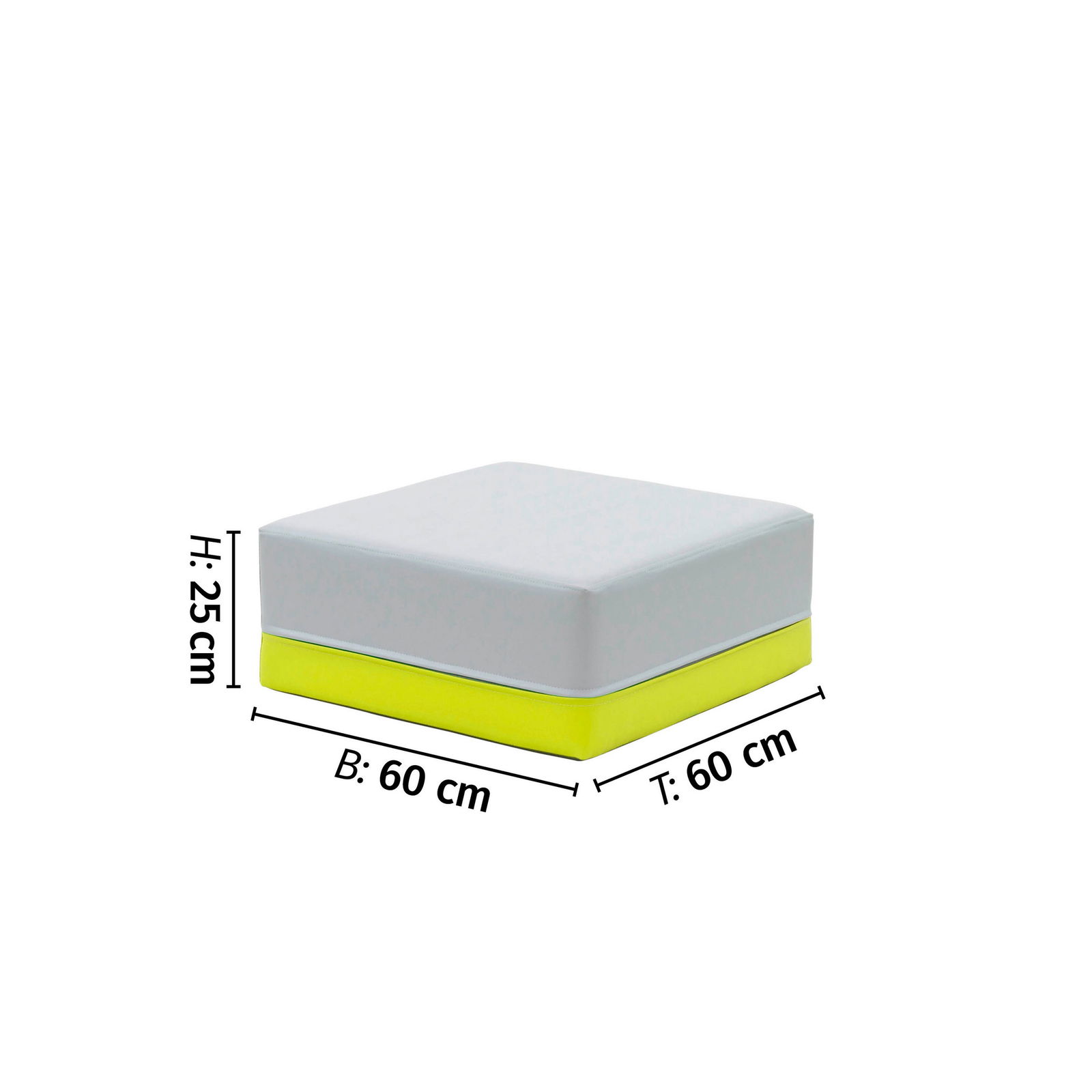 - 1-Sitzer (quadratisch): 60 x 60 cm | Gewicht 2,85 kg