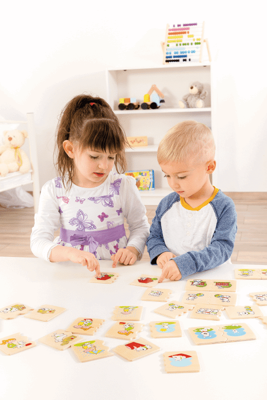 Das Cognito Zuordnungspuzzle „Räumlichkeit“ ist ein pädagogisch wertvolles Spiel, das Kindern dabei hilft, ihr räumliches Vorstellungsvermögen zu entwickeln und zu schärfen. Kinder lernen, Objekte in Bezug auf ihre Position zu bestimmen, wie z.B. „oben“, „unten“, „vor“ und „hinter“.