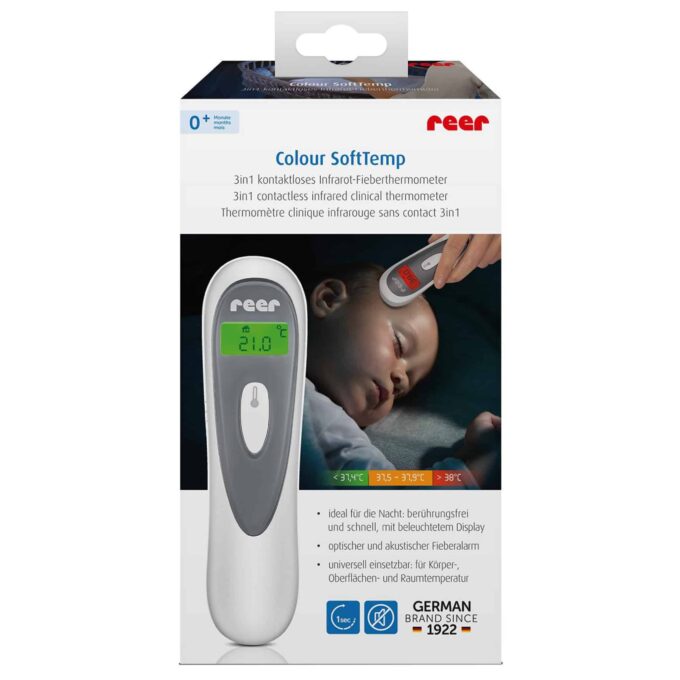 Willkommen beim Colour SoftTemp 3-in-1 Infrarot-Fieberthermometer! Dieses innovative Thermometer ist die perfekte Lösung für einfaches, kontakt- und schmerzloses Fiebermessen bei Kindern und Erwachsenen. Mit modernster Infrarot-Technologie erhalten Sie innerhalb von nur einer Sekunde exakte Messergebnisse auf dem farbigen LCD-Display – ideal für den Einsatz sowohl bei Tag als auch bei Nacht.