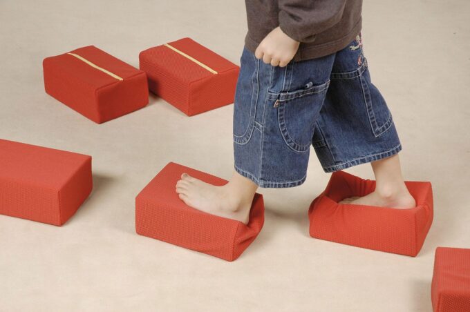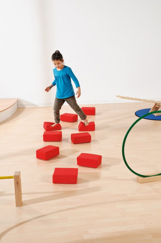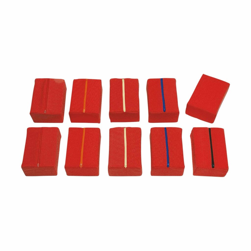 Bei Comprimo handelt es sich um 10 Quader (5 Paare), die jeweils über unterschiedliche Druckwiderstände verfügen. Kinder können mit ihren Händen oder Füßen auf die Quader drücken und schnell herausfinden, wie stark sie die unterschiedlichen Quader drücken müssen. Die Herausforderung besteht darin, die passenden Paare zu finden – eine spannende Aufgabe, die durch die auf der Rückseite angebrachten Reißverschlüsse in den gleichen Farben kontrolliert wird. So lernen die Kinder auf spielerische Weise, ihre motorischen Fähigkeiten zu verfeinern und ihre Konzentration zu steigern.