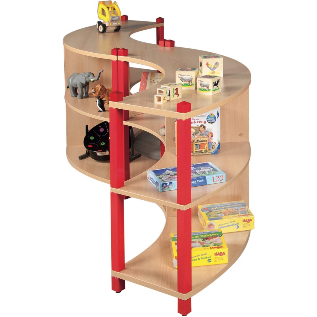 - Ansprechende Präsentation: Die offene Gestaltung der Regale lädt dazu ein, Bücher und Spielzeuge ansprechend zu präsentieren. Das weckt die Neugier der Kinder und animiert sie zum eigenständigen Beschäftigen.