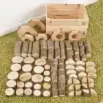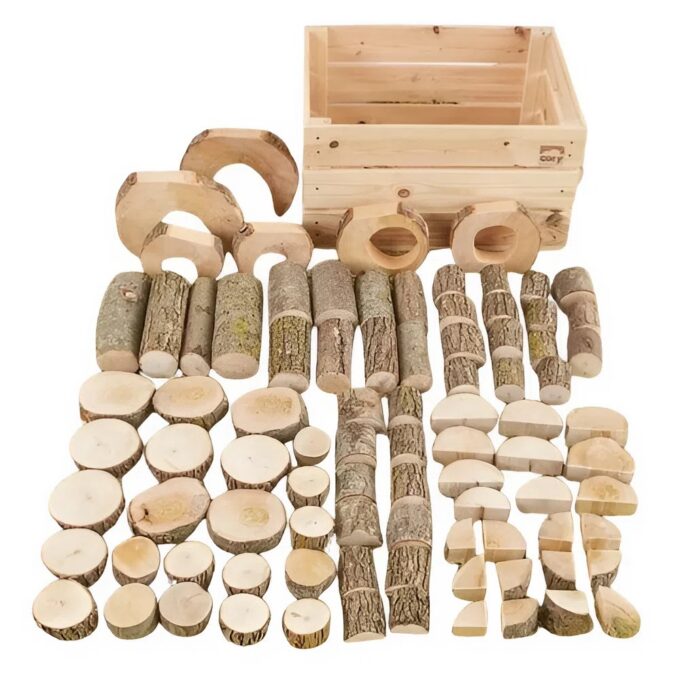 Öffnen Sie die Tür zu einer Welt, in der die Natur zum Baumeister wird! Unser „Crate Constructa“ Set ist weit mehr als nur eine Sammlung von Holzklötzen – es ist ein Tor zu grenzenloser Fantasie, kreativer Problemlösung und haptischem Lernen. Dieses 90-teilige Set, prall gefüllt mit naturbelassenen Holzscheiten, Ästen und Scheiben in verschiedenen Formen und Größen, bringt die Magie des Waldes direkt ins Spielzimmer. Es ist das perfekte Werkzeug für kleine Entdecker, die bereit sind, alles zu bauen, was ihre Vorstellungskraft hergibt – von zauberhaften Feen-Tee-Partys über robuste Troll-Türme bis hin zu gemütlichen Verstecken für wilde Tiere. Geliefert in einer praktischen Holzkiste, ist dieses Set eine Einladung, mit den Händen zu denken, Geschichten zu erfinden und einzigartige Welten zu erschaffen.