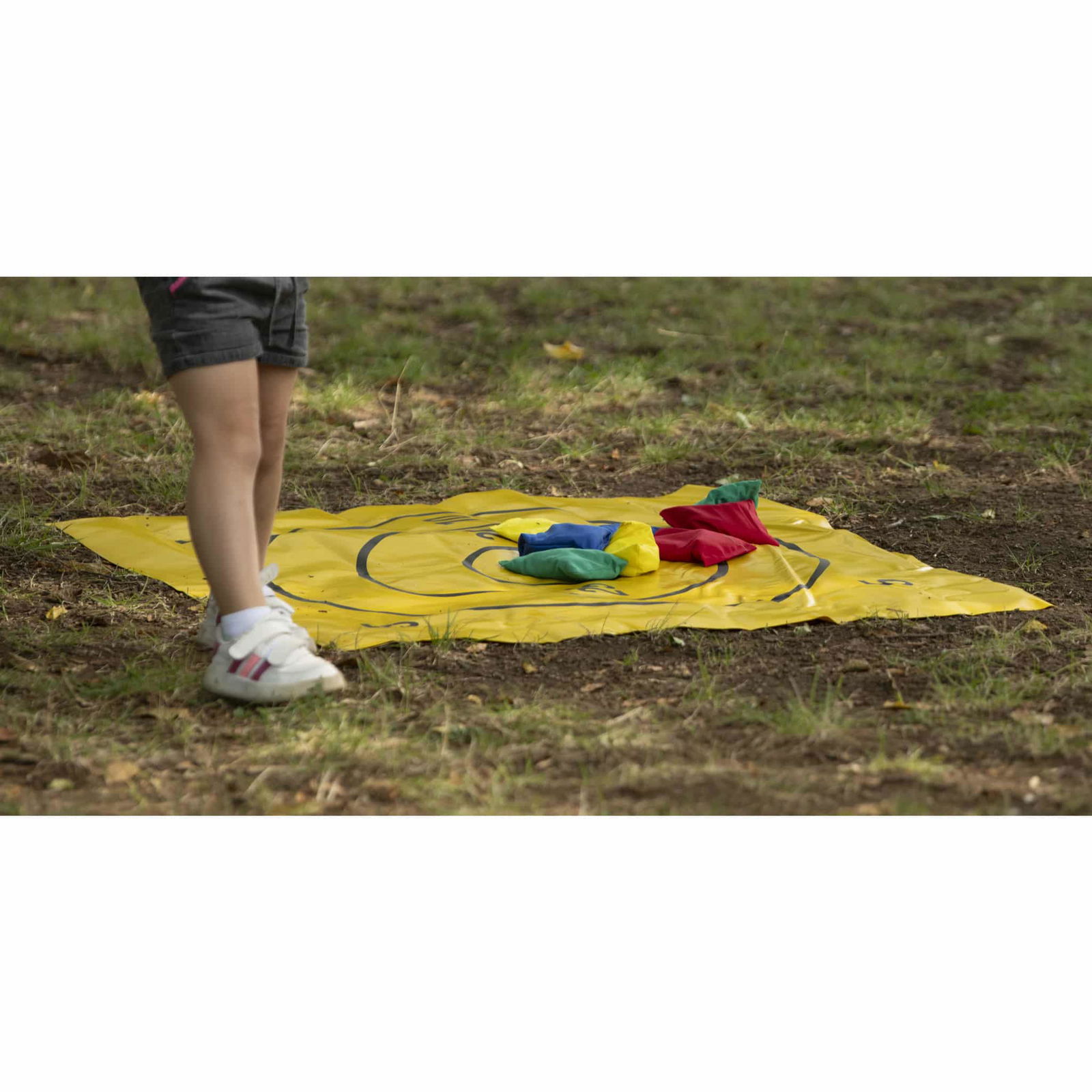 - 1 Set „Gezielt werfen und punkten“ mit Zielmatte und Bohnensäckchen