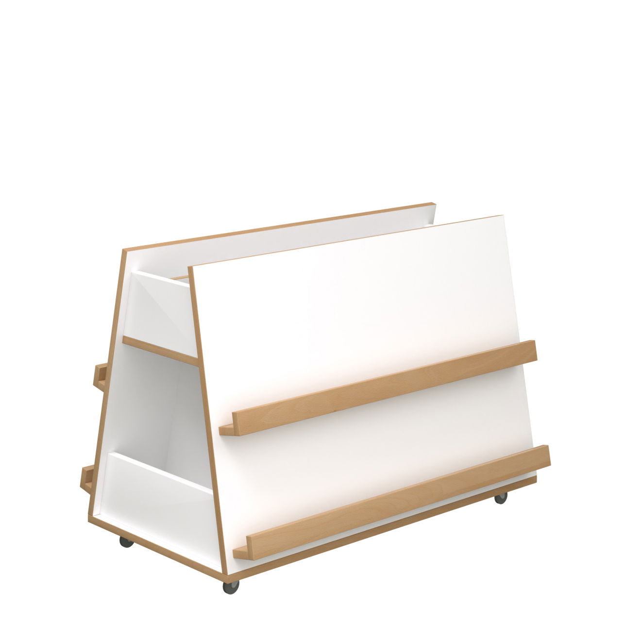 Ordnung ist auch in der Kuschelecke wichtig. Das Podest verfügt über eine integrierte Rollkiste, in der Kissen, Decken oder Spielmaterial schnell verschwinden können. Der Bücherwagen bietet im Inneren reichlich Platz für den Bestand an Kinderliteratur, sodass die Umgebung stets aufgeräumt und einladend wirkt. - Hochwertige und robuste Materialien