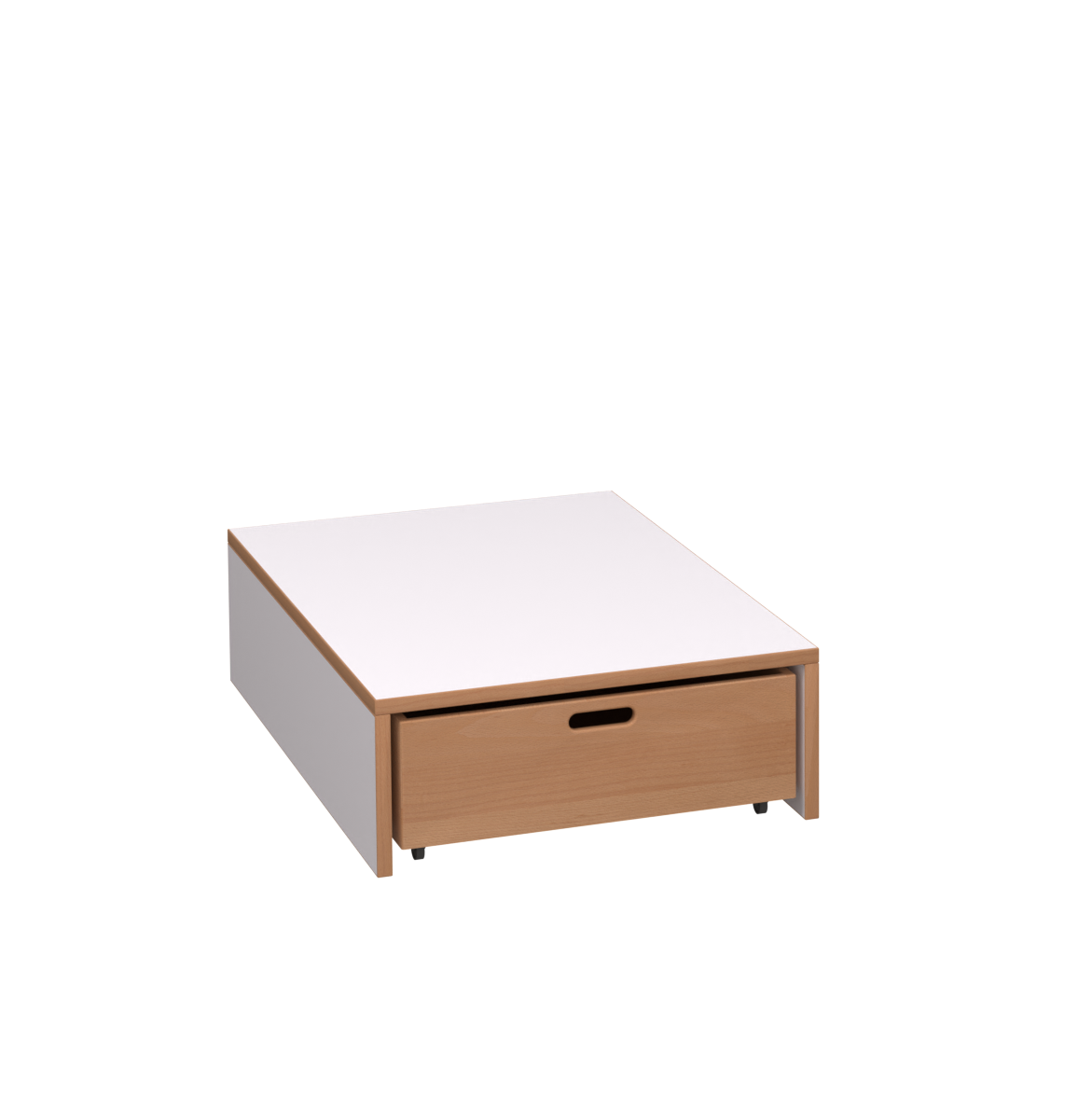 - 1x Rollkiste für Podest (Maße: B 48 x H 17,5 x T 69 cm)