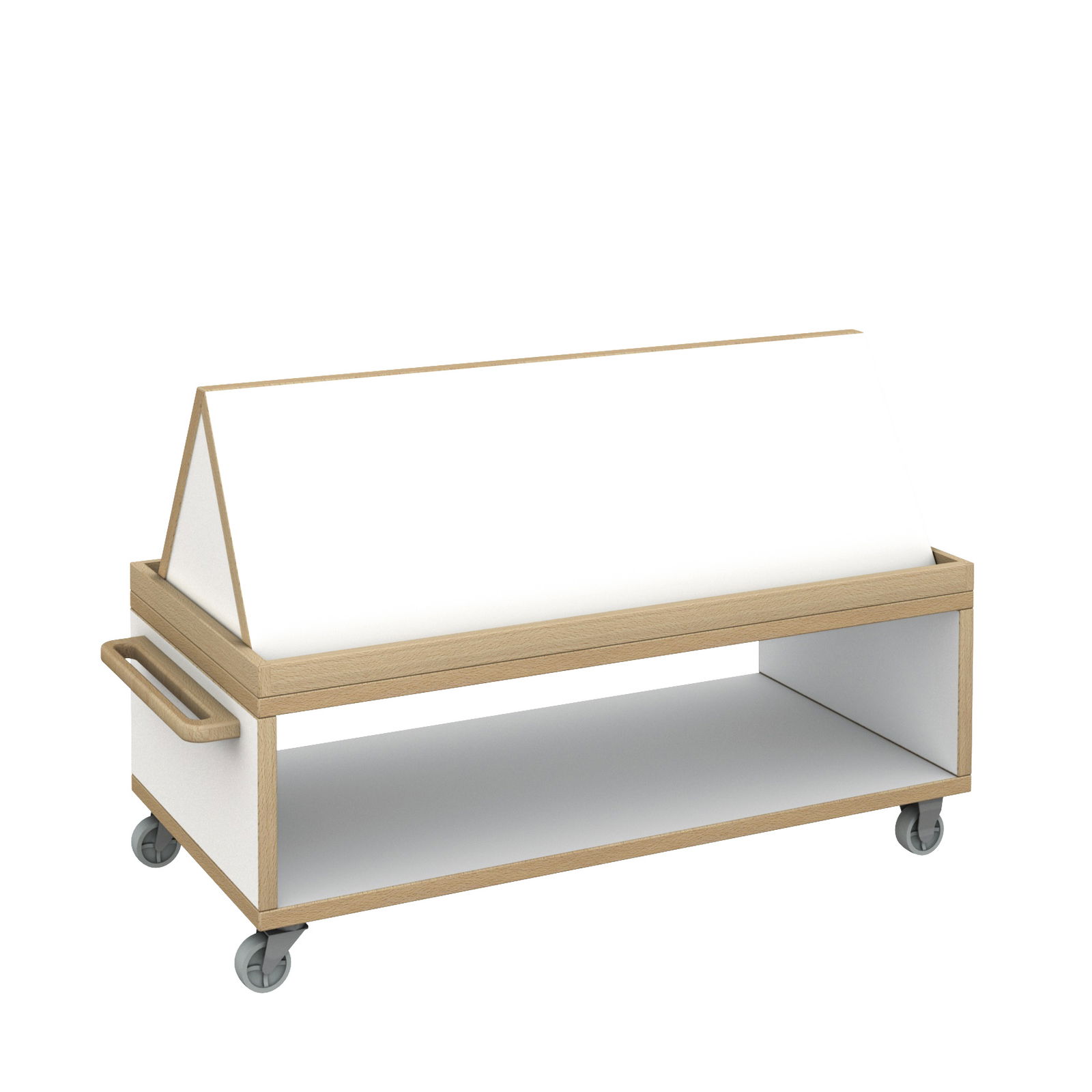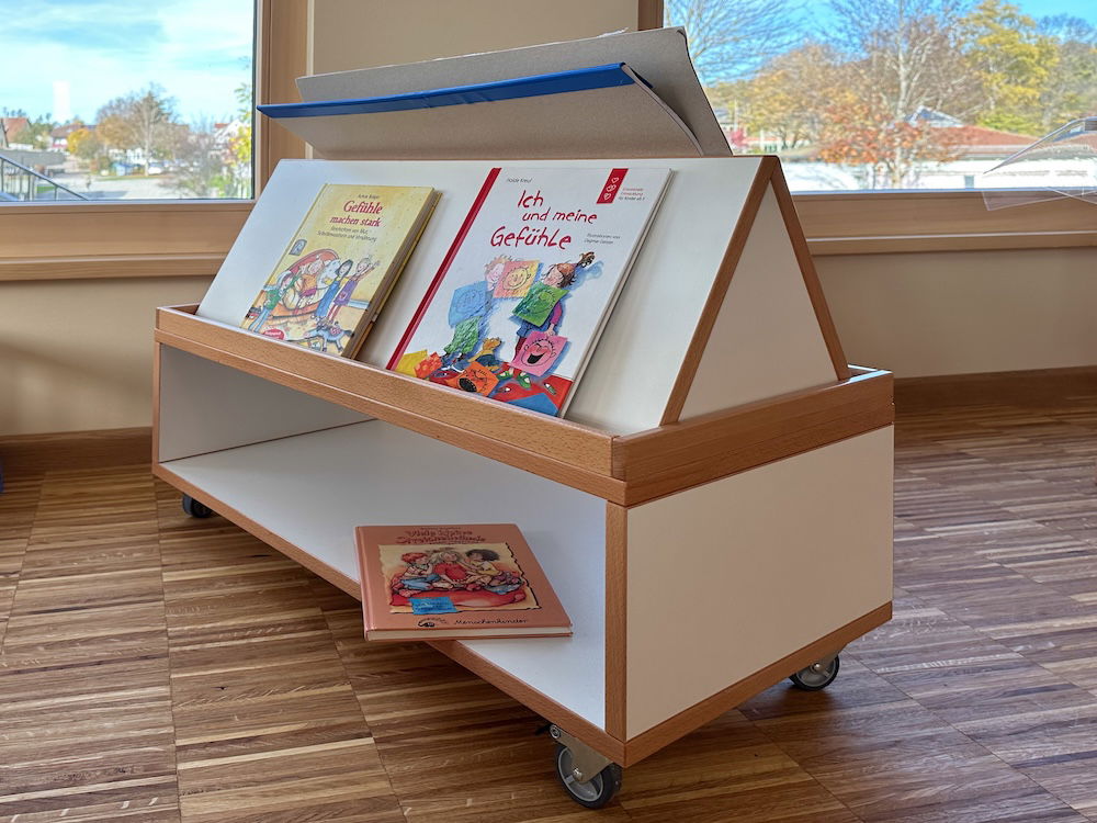 Der kleine Bücherwagen ist perfekt, um Kinder neugierig zu machen. Dank seiner schrägen Präsentationsfläche können aktuelle Lieblingsbücher oder thematisch passende Literatur ansprechend und sichtbar ausgestellt werden. So wird die Lust am Entdecken geweckt und die Hürde zum Lesen spielerisch gesenkt.