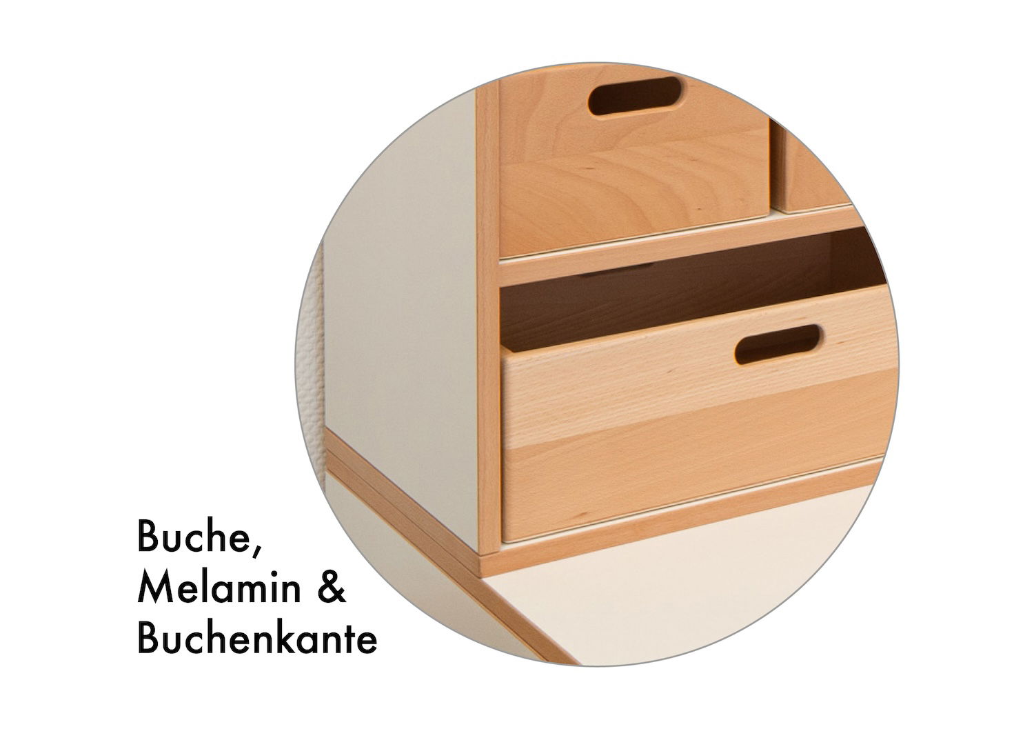• Akzente/Kisten: Massive Buche, klar lackiert