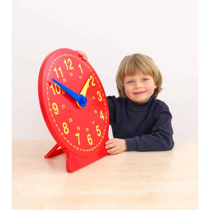 Willkommen zur Betzold Demonstrations-Uhr! Diese großzügig gestaltete Uhr mit einer Höhe von 41 cm ist das perfekte Hilfsmittel, um Schülerinnen und Schülern im Alter von 5 bis 9 Jahren das Thema Zeit anschaulich und interaktiv näherzubringen. Sie eignet sich ideal für den Einsatz an der Tafel oder auf dem Tisch und sorgt dafür, dass alle Zahlen und Zeiger mühelos zu erkennen sind.