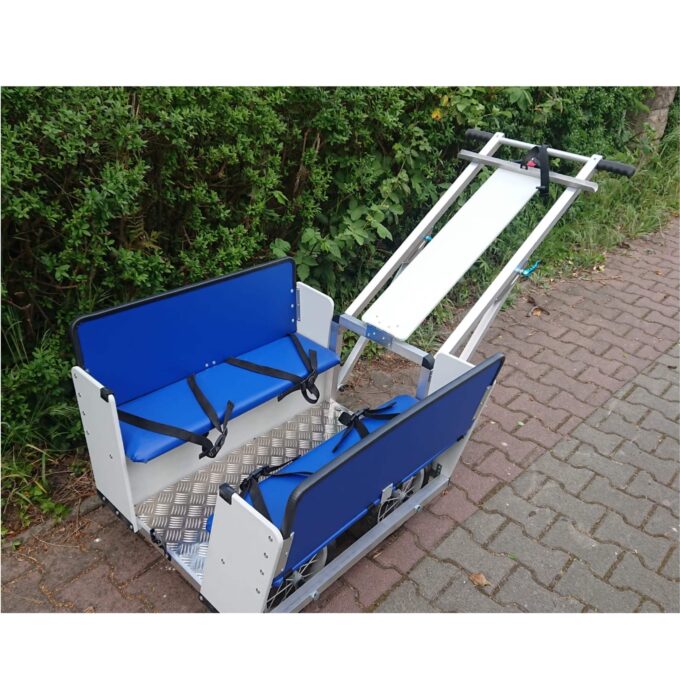 Alle Sitzplätze sowie die Rückenlehnen sind mit leicht zu reinigendem Kunstleder bezogen. Die Sitze sind mit einer wärmenden Schaumstoffauflage gepolstert. Der Bezug ist pflegeleicht und abwaschbar. Jeder Wagen verfügt über einen Klapptisch mit Verriegelungsgurt. Der Lenker ist mit ergonomischen Griffen ausgestattet und kann an die Körpergröße angepasst werden.