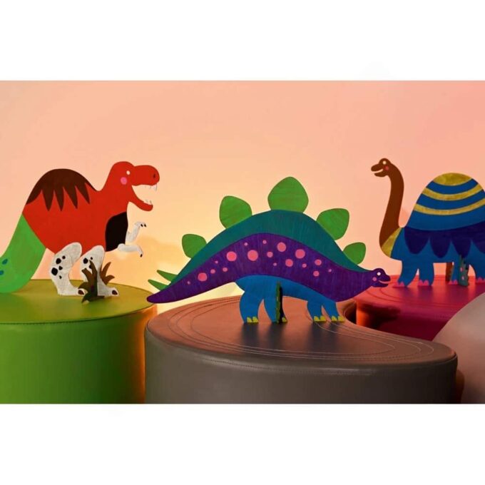 Jeder Aufsteller hat die Maße von 19 x 32 cm und kommt mit einem stabilen Standfuß, sodass die Dinos sicher auf jedem Tisch oder Regal stehen können. Ideal für den Einsatz in Kindergärten, Schulen oder für kreative Bastelstunden zu Hause – die Aufsteller sind perfekt für Kinder ab 3 Jahren geeignet.
