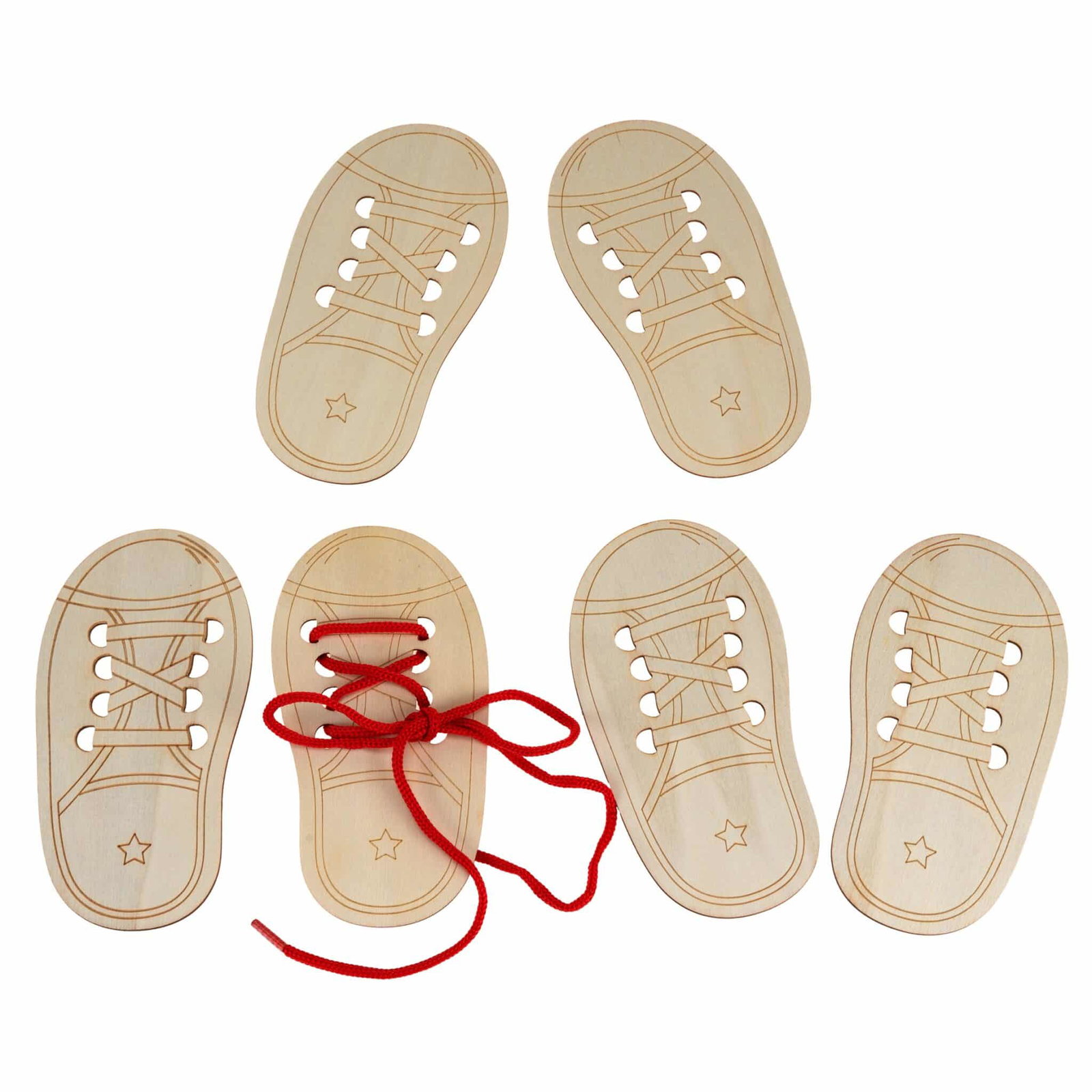 DIY-Holzform „Fädelschuhe“ 6er Set – Wo Lernen auf spielerische Geschicklichkeit trifft