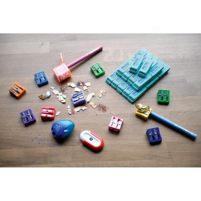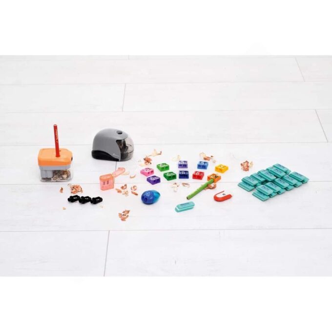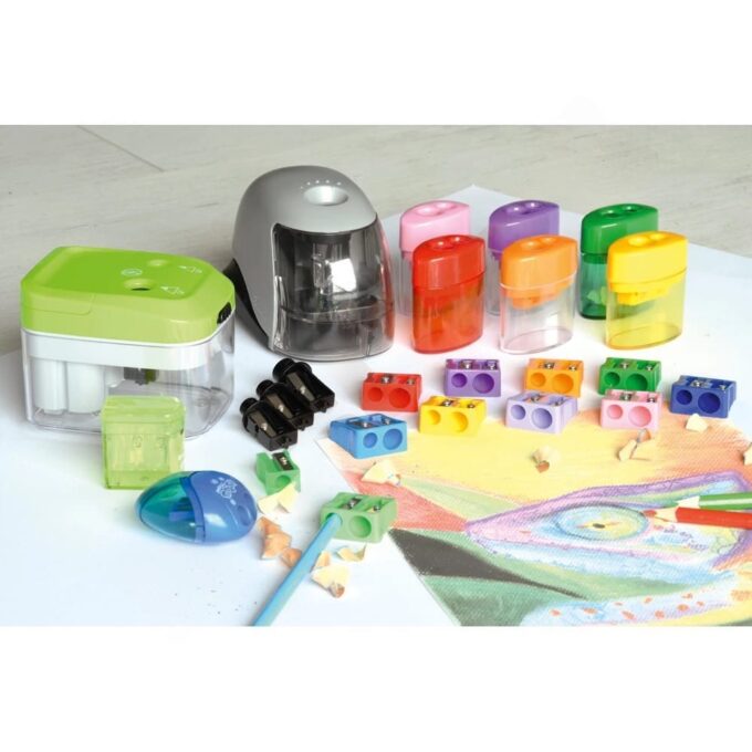 Der transparente Behälter fängt alle Späne auf, sodass die gesamte Anspitzaktion sauber und ordentlich bleibt. Der Anspitzer ist aus robustem Kunststoff gefertigt und in diversen, fröhlichen Farben erhältlich – die Auswahl erfolgt nach Zufallsprinzip, also lassen Sie sich überraschen!