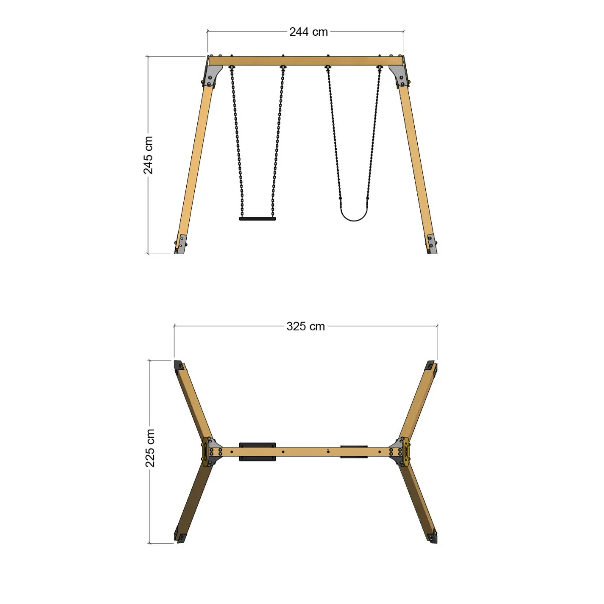 Da Holz als Naturprodukt arbeitet, empfehlen wir, einige Holzelemente selbst zu bohren, um optimale Passgenauigkeit und Stabilität zu gewährleisten. Bitte beachten Sie, dass die Doppelschaukel nicht für Kinder unter 3 Jahren geeignet ist. Die Benutzung sollte stets unter unmittelbarer Aufsicht von Erwachsenen erfolgen. Die angegebenen Maße und Farben können geringfügig abweichen.