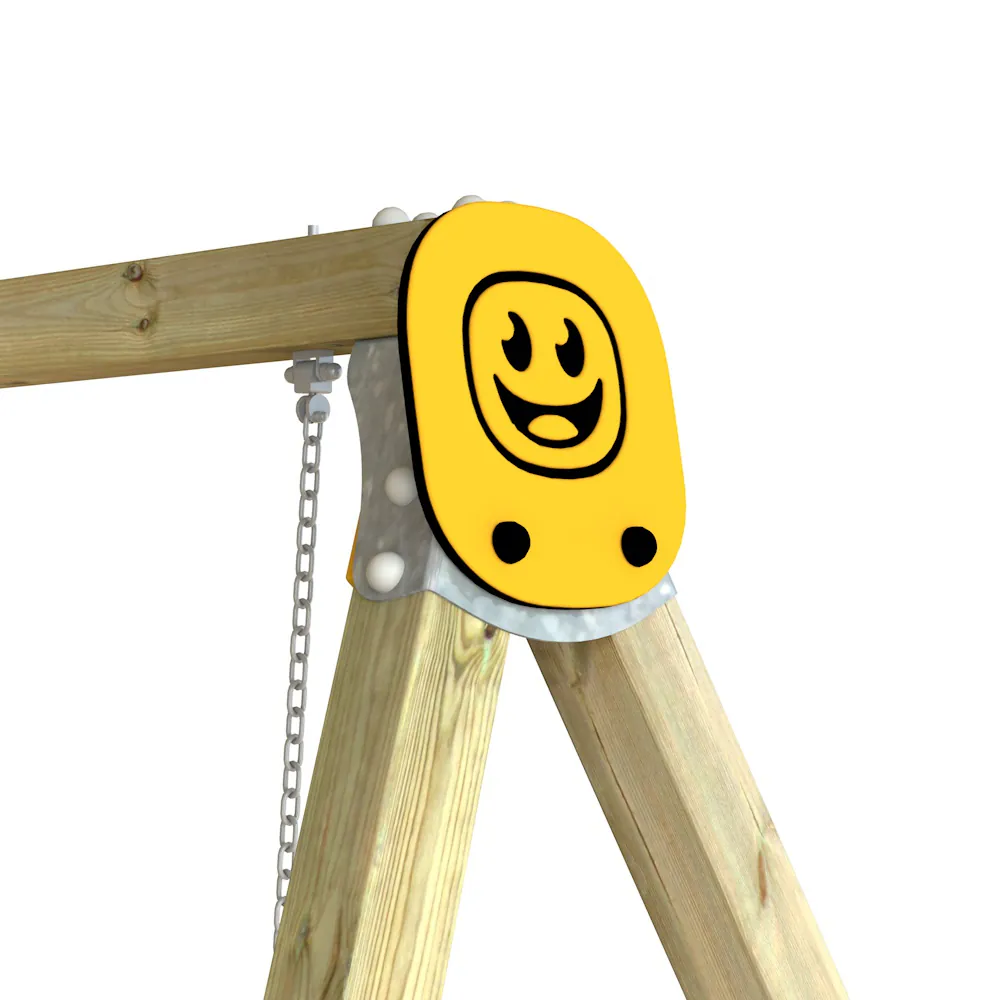 Die runden HDPE-Elemente können nach Wunsch mit unserem Wickey-Logo oder einem freundlichen Smiley-Gesicht verziert werden – das sorgt für ein einladendes und fröhliches Ambiente im Spielbereich!