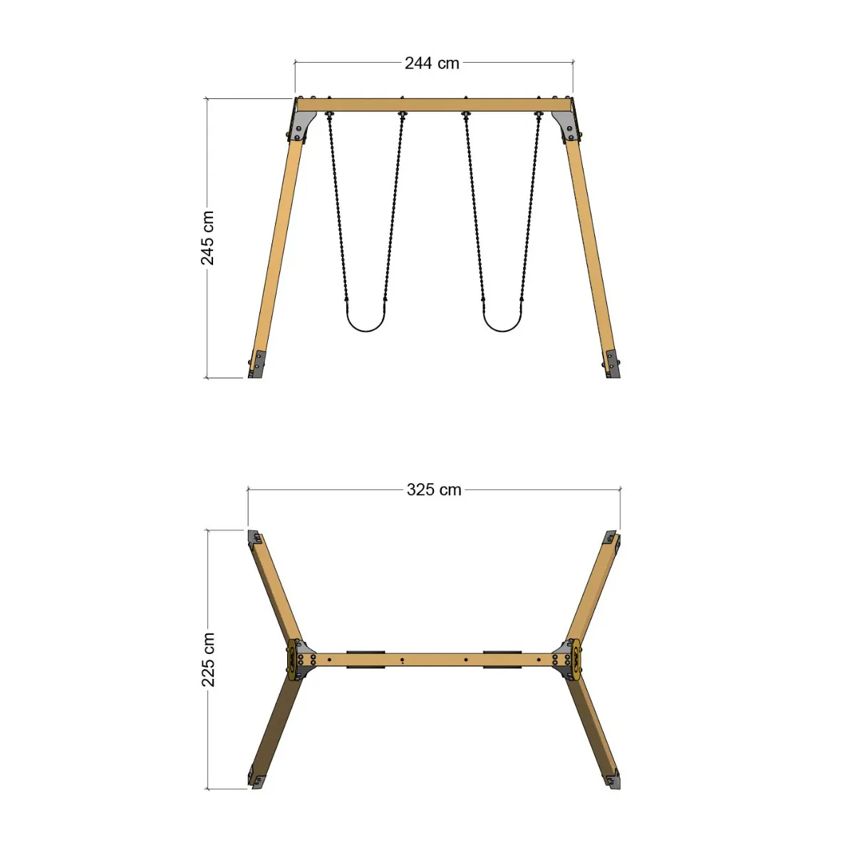 Da Holz ein Naturprodukt ist, empfehlen wir, einige Holzelemente selbst zu bohren, um die Passgenauigkeit und Stabilität zu gewährleisten. Bitte beachten Sie, dass die Doppelschaukel nicht für Kinder unter 3 Jahren geeignet ist und immer unter unmittelbarer Aufsicht von Erwachsenen genutzt werden sollte. Die angegebenen Maße und Farben können geringfügig abweichen.