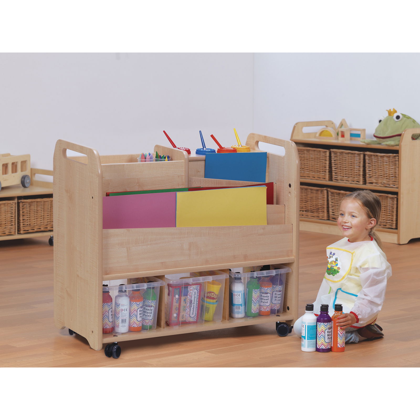 Langes Suchen nach dem richtigen Material unterbricht den kreativen Fluss. Dank der drei großen und vier kleineren, durchsichtigen Kunststoffboxen sehen Sie auf den ersten Blick, was sich darin befindet. Die offenen Fächer und Halterungen sorgen dafür, dass Papiere, Stifte und Bänder stets einsatzbereit sind. Das fördert die Selbstständigkeit der Kinder und die Effizienz in jedem Atelier. - Extrem robust und hoch belastbar